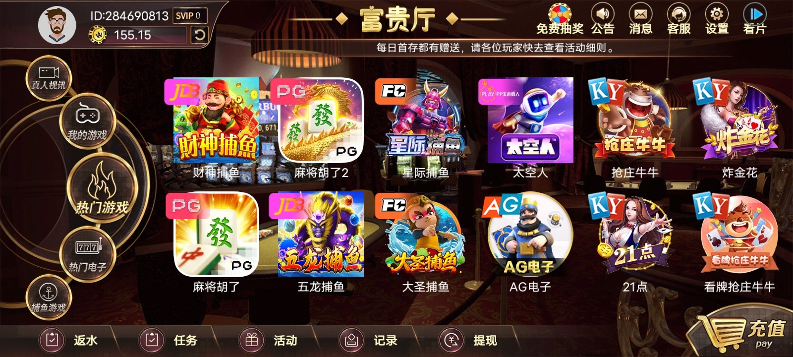很简单,下载这个台app然后打开点弹窗红包其他不用管直接去pg打,没打出来的安卓手机自带一个应用分身,分身一下接着打,再没打出来的应用商店下载一个悟空分身看几个广告能领2小时会员无限开分身够打的了。打出来的号绑手机号跟银行卡然后再绑(okpay topay gopay 波币钱包)四个钱包其中一个,我跟我朋友出的两个钱包一个是波币一个okpay都是几分钟到账好像是系统自动打款