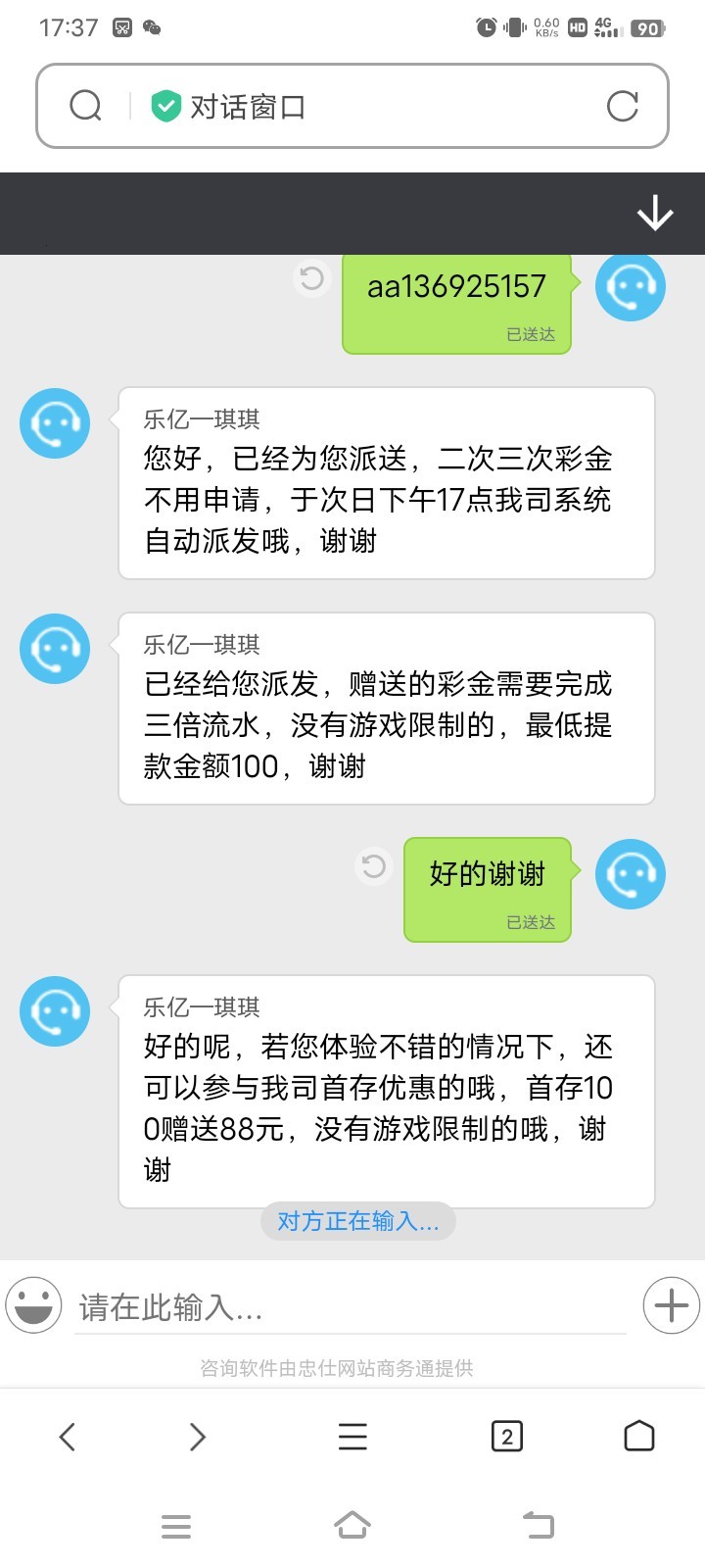 zwk111 这个跟七星彩一家的,四个手机号都领了88