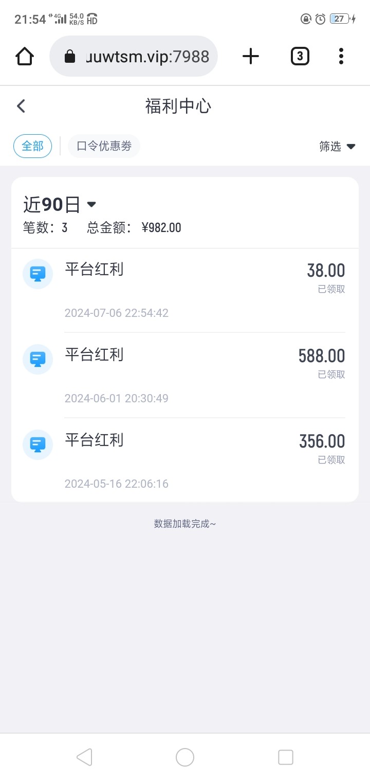 我不知道你们有没有,反正我一次没充值,第一次送了300多,打到7000多没敢提,以为提不了,然后全打没了,光反水都打了300多,今天又送了188,打到600提了300试试,可以到账,网站和送的福利看图