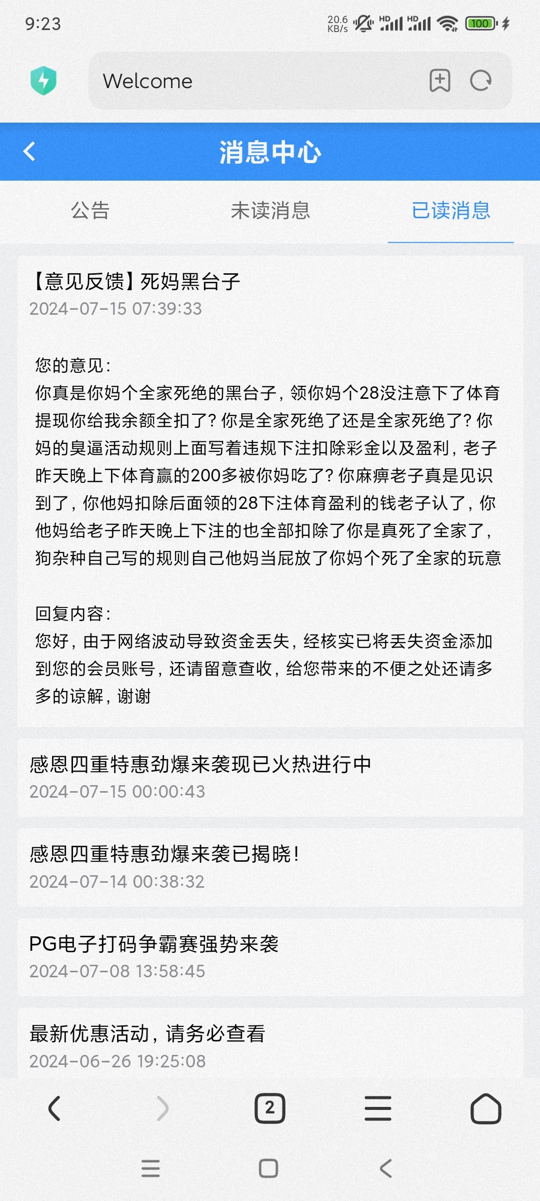 去反馈一下,骂难听点,我前几天下完体育第二天领了他28彩金下完注提现给我全扣了,我反馈骂了一顿狠的给我返回了,反馈点我的翻到下面点联系我们,里面有投诉建议