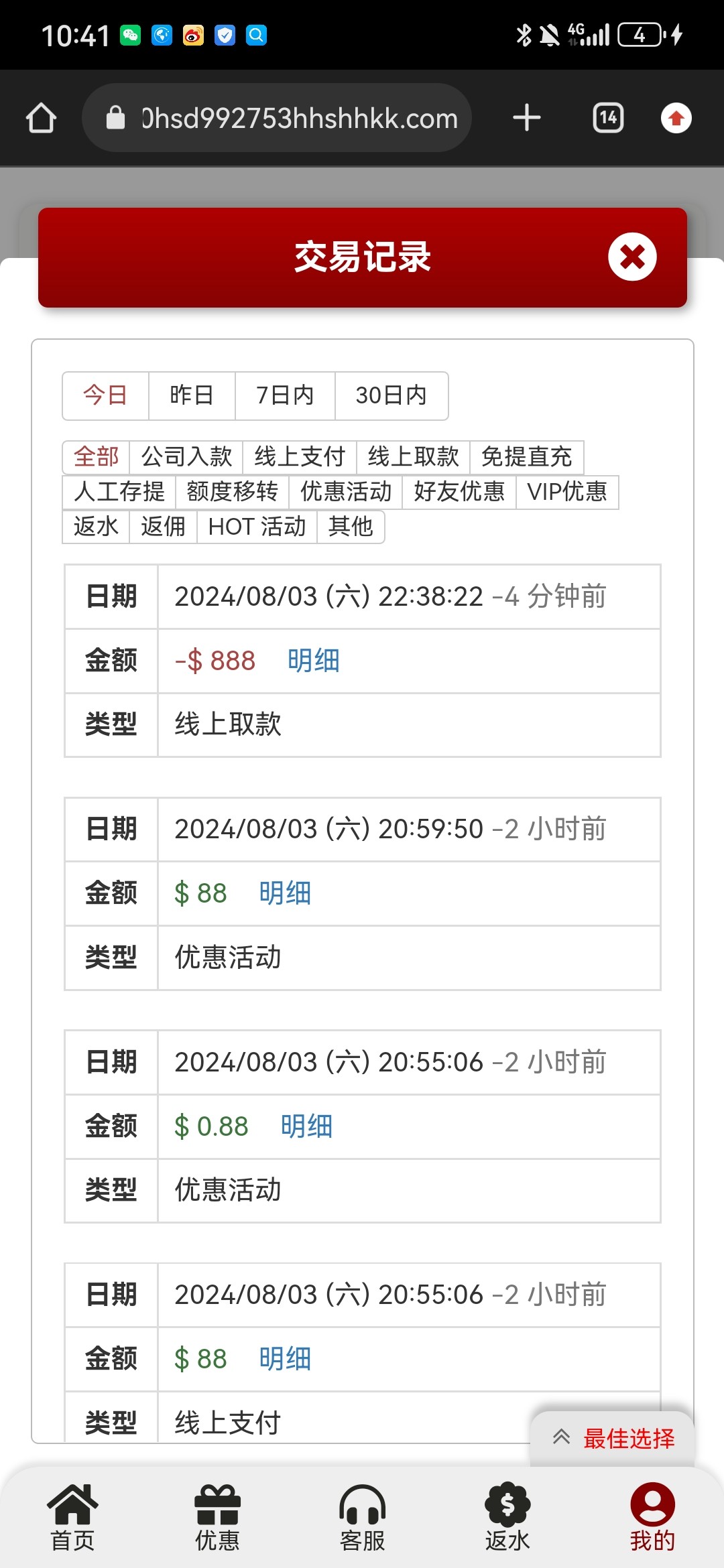 88➕88那个台啊,玩半个月我输了3k,今天提3k秒到,总体算下来负盈利58