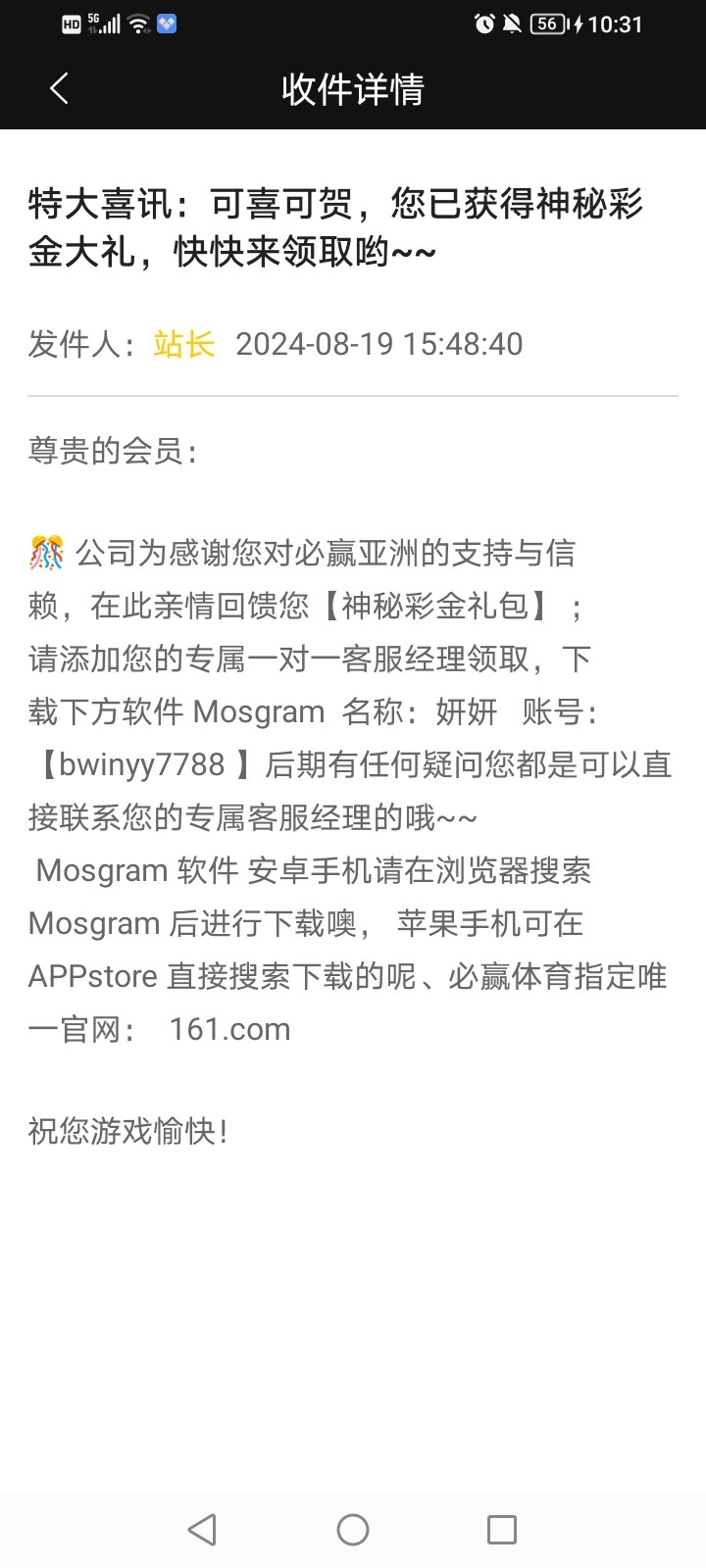 161站内信神秘彩金