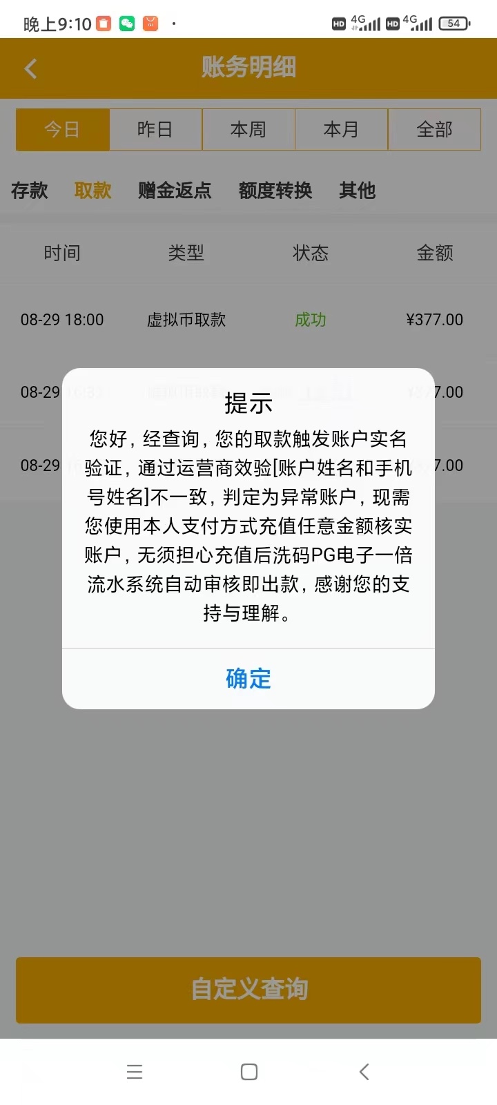 出了两个号,多ip同名都给出了,提377叫我任意充值,就冲了50,然后提了,777叫我冲100,我也冲了100,只打了100流水就成功了。