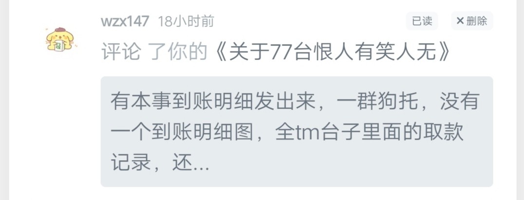因为不想跟你们这群恨人有的废物傻狗废话,所以删了贴,你觉得有理连着追问。