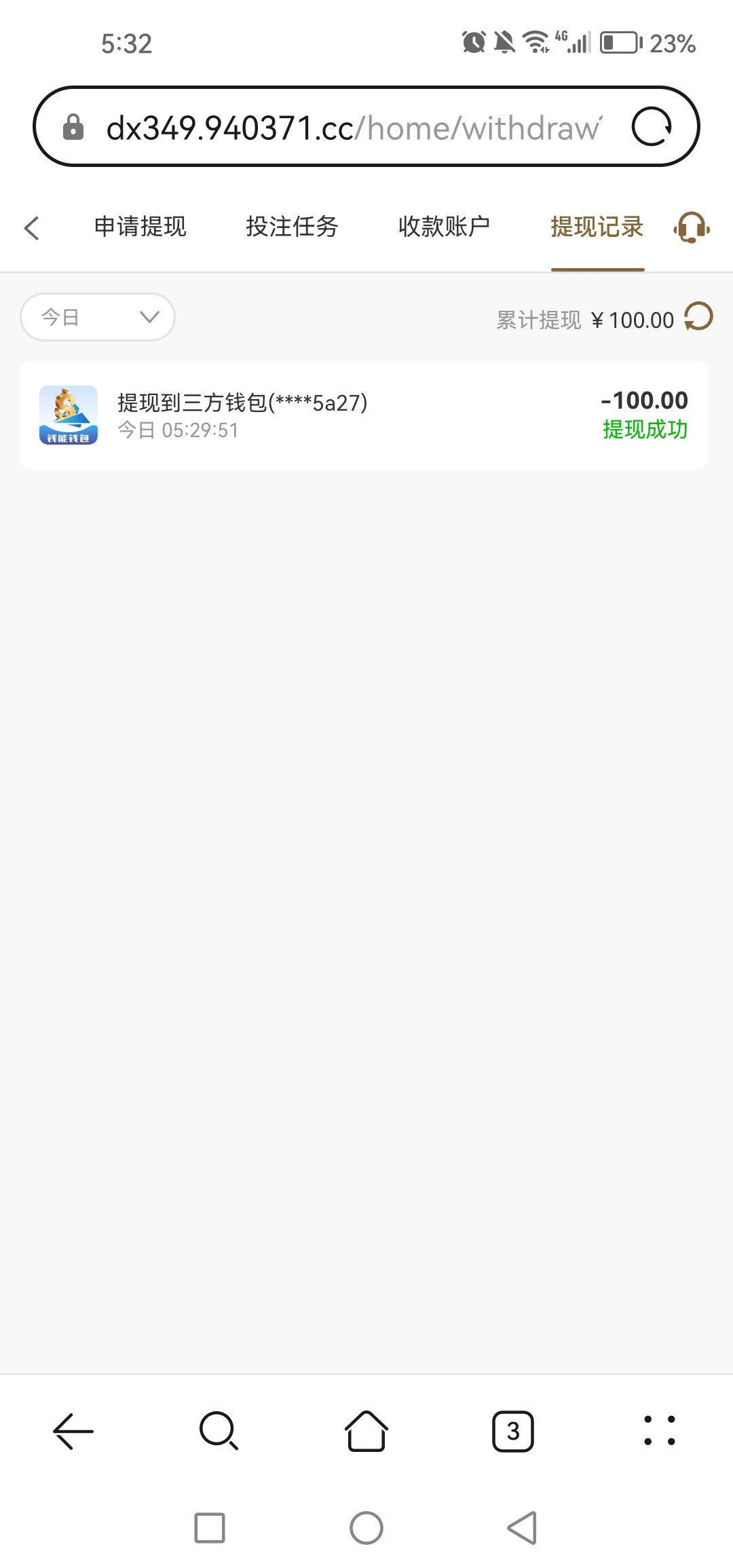 提100已到账