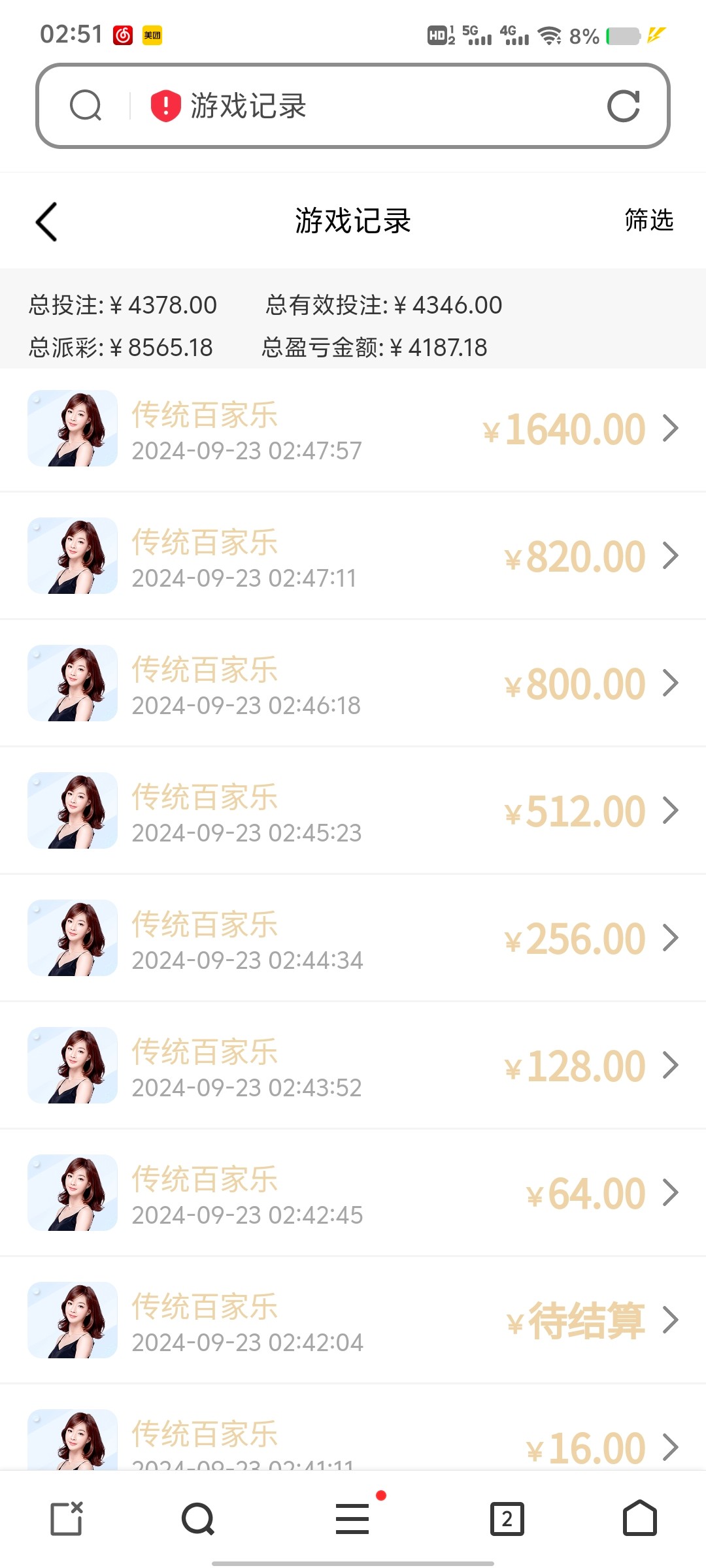 啥bug。。就是遇上长龙了,狗运好啊梭了9把