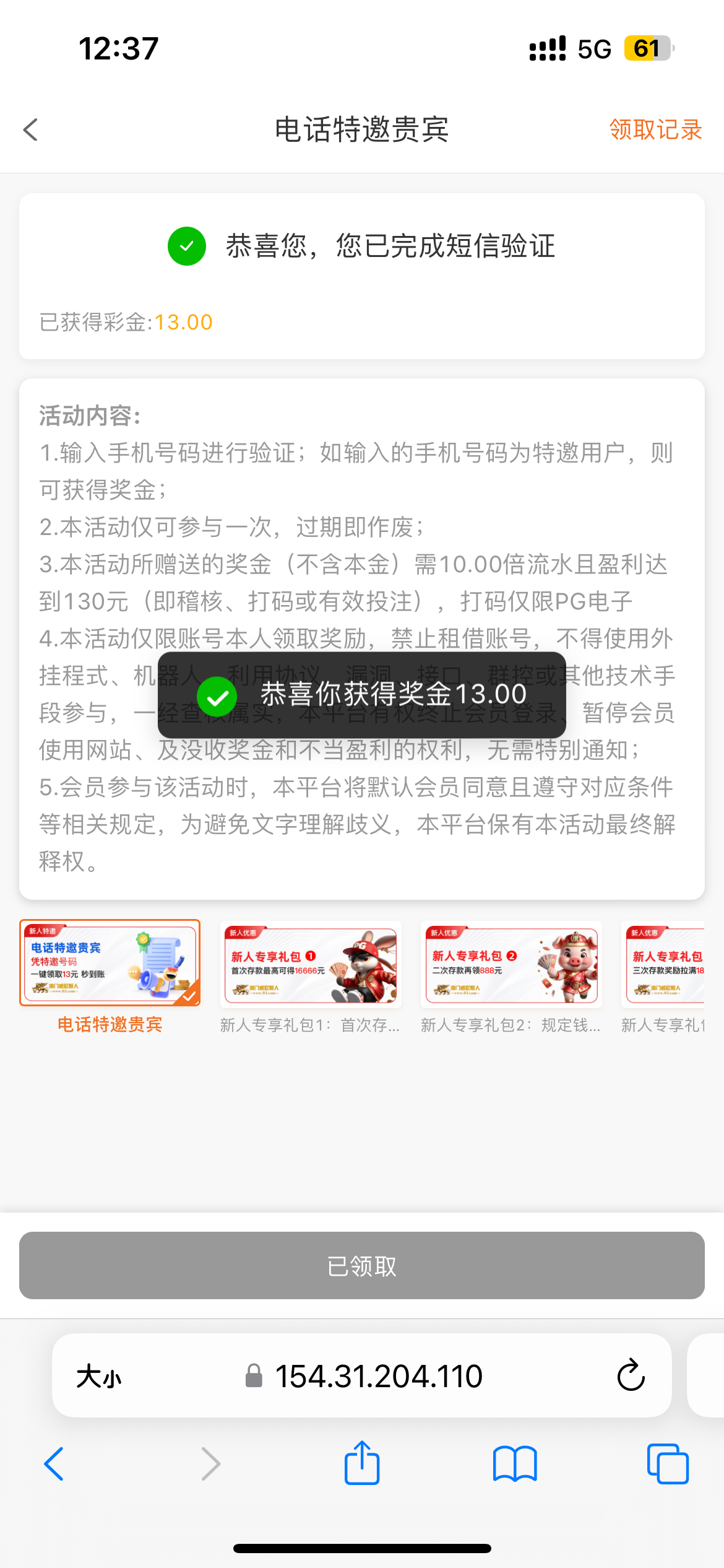 用手机号注册在优惠里面接验证码领取