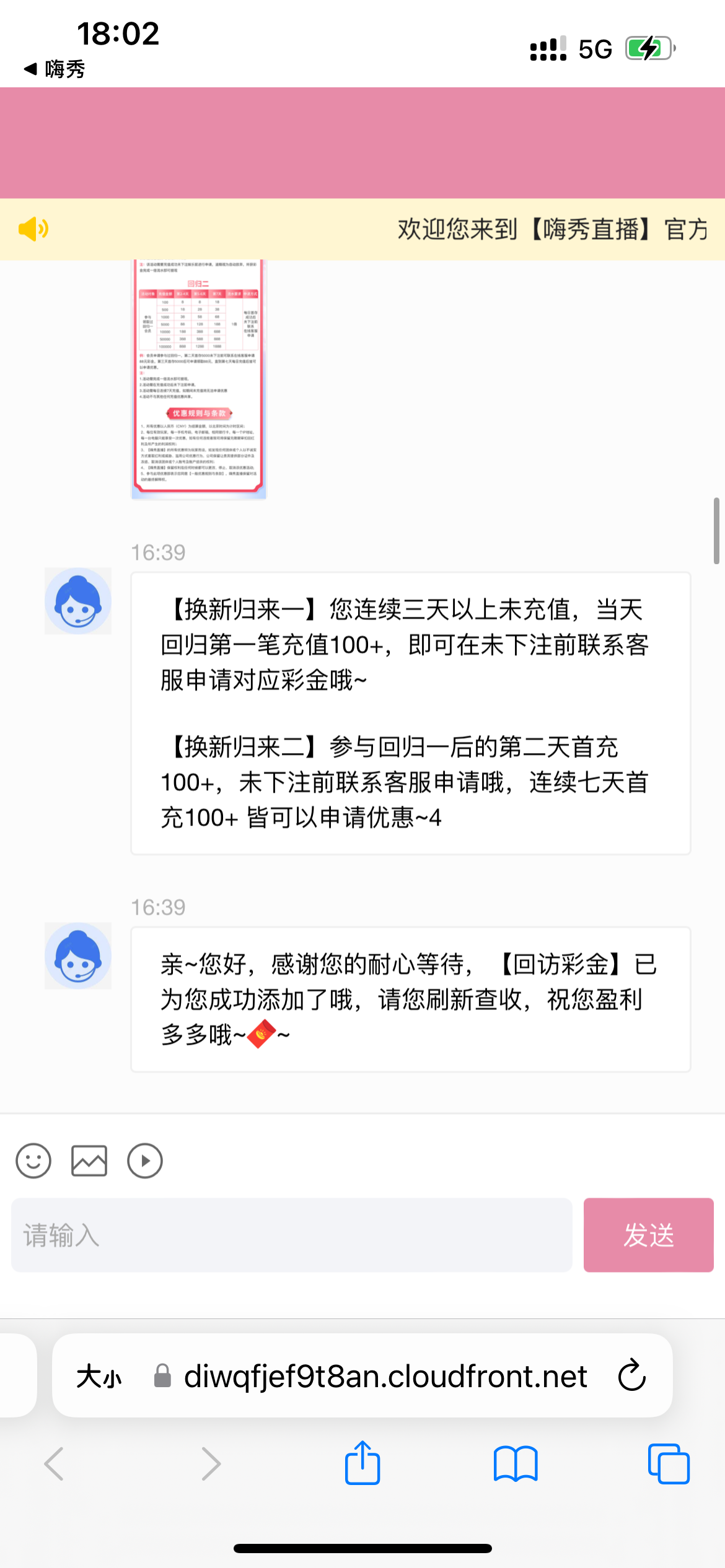 回访送18,没打出来,超过30天未充值还能参加100+88我还没打,网址6656.tv