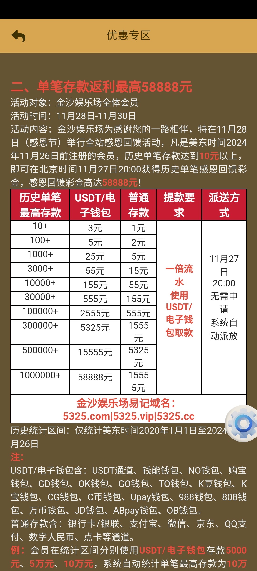 5325金沙领回馈彩金