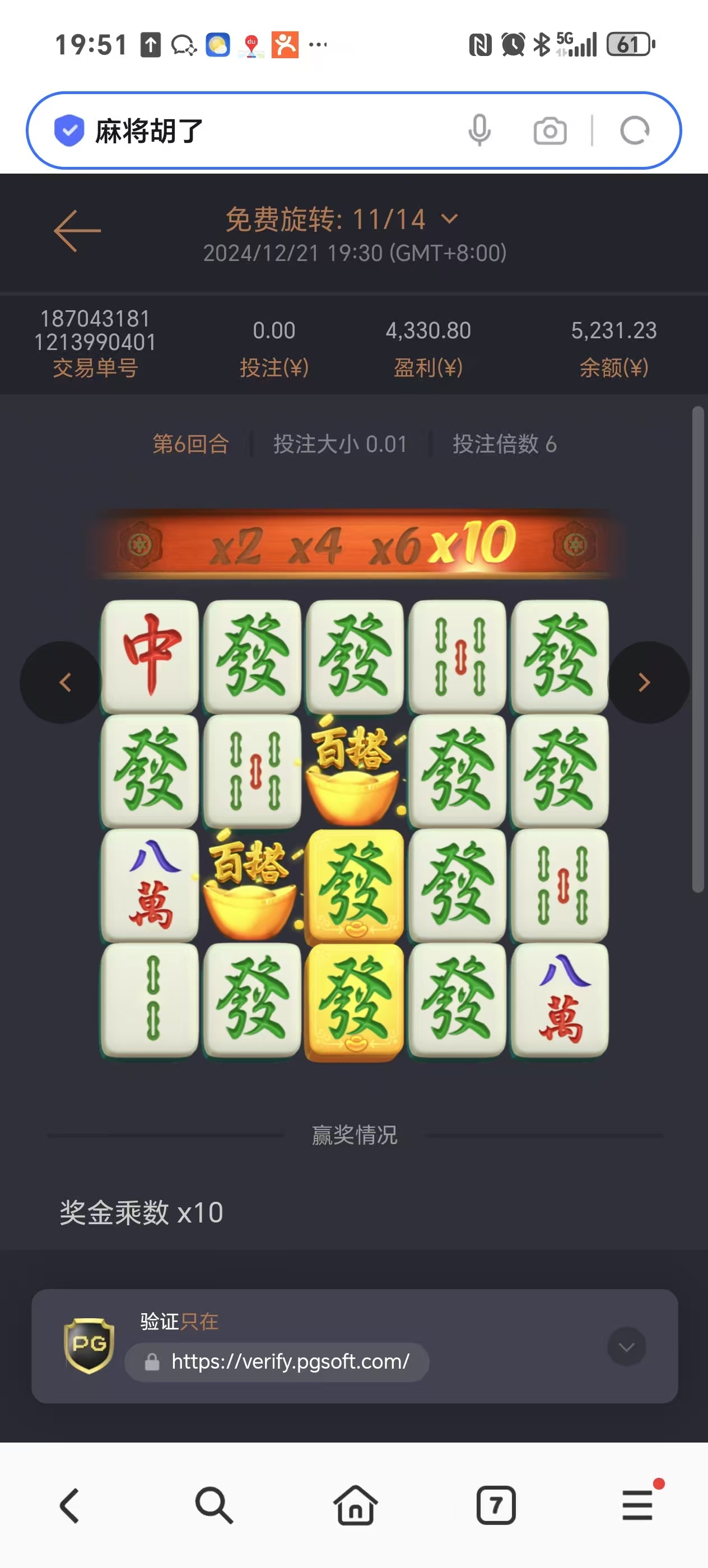 你这估计麻将前十奖了   我觉得第一  毕竟我没见过比你这更大的倍数
