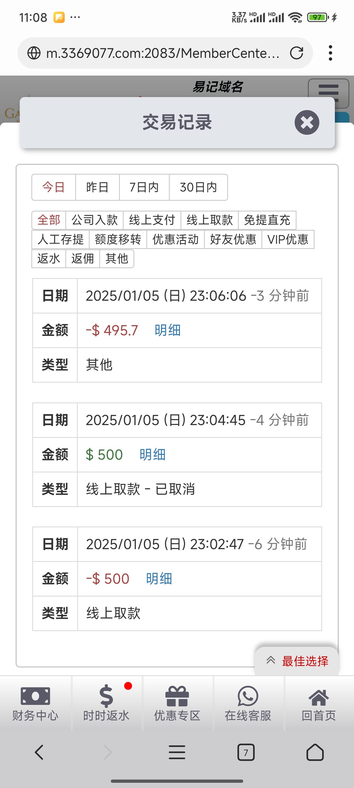 2块上500然后给扣除了