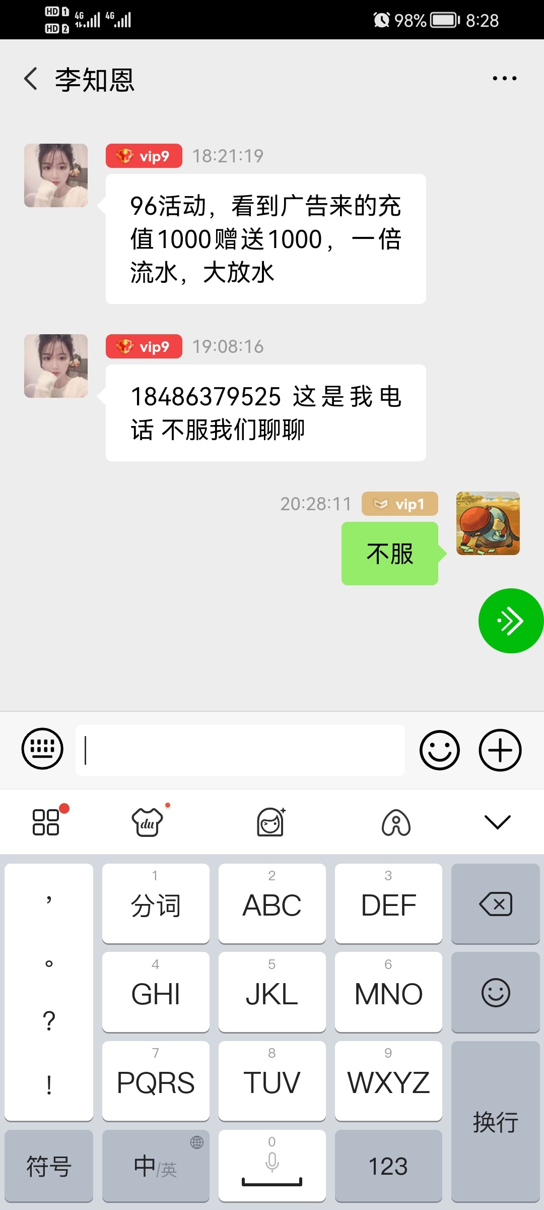 客服说送你麻痹