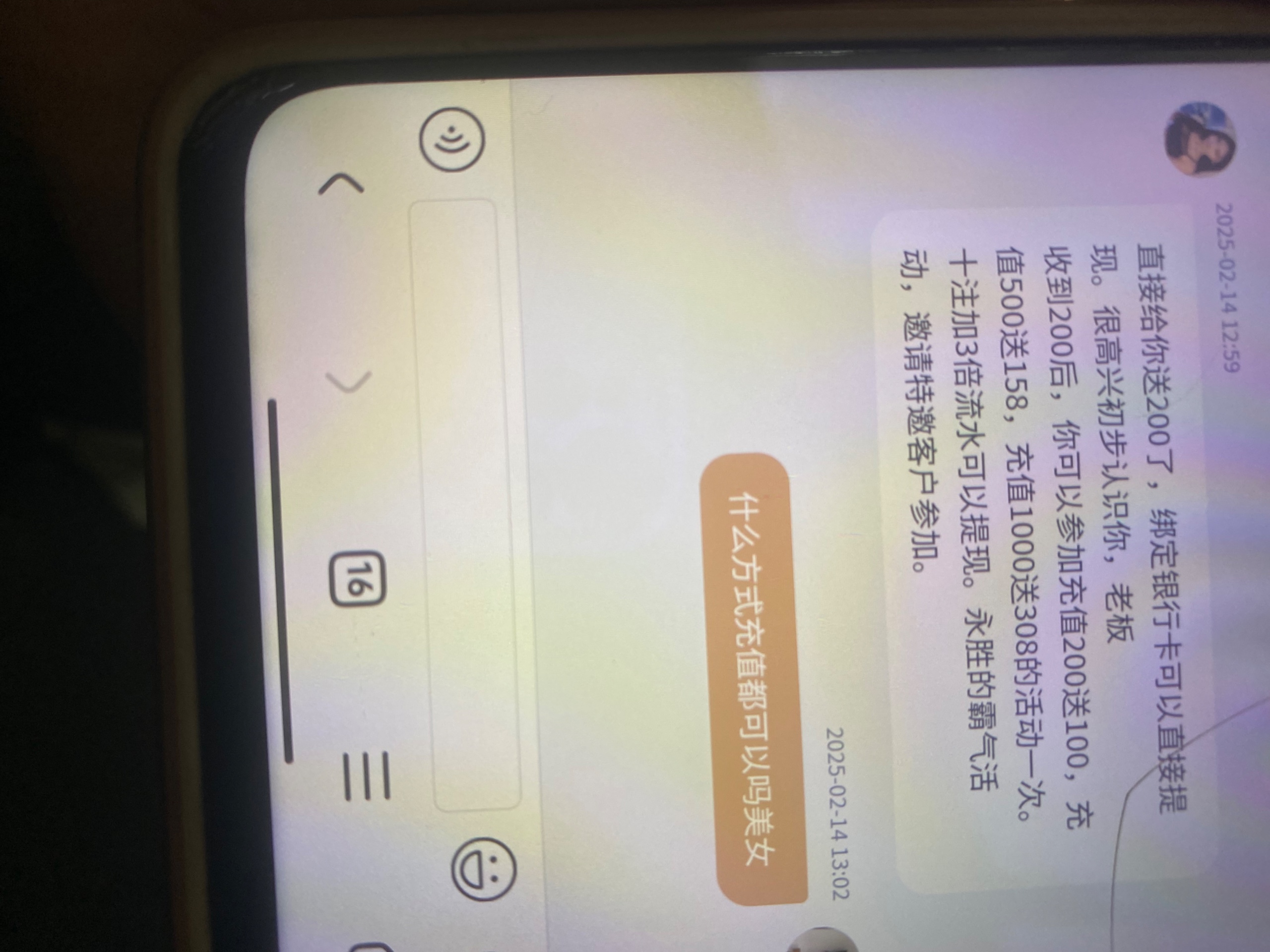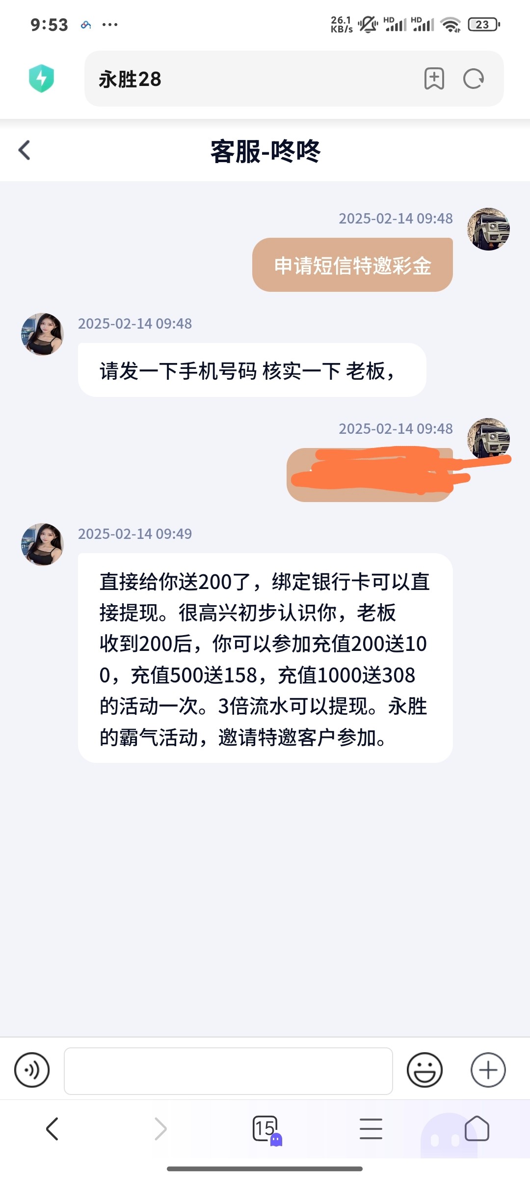 昨天收到短信去加旺旺的客服,发手机号过去说不在名单。注册问在线客服发过来就秒了200。