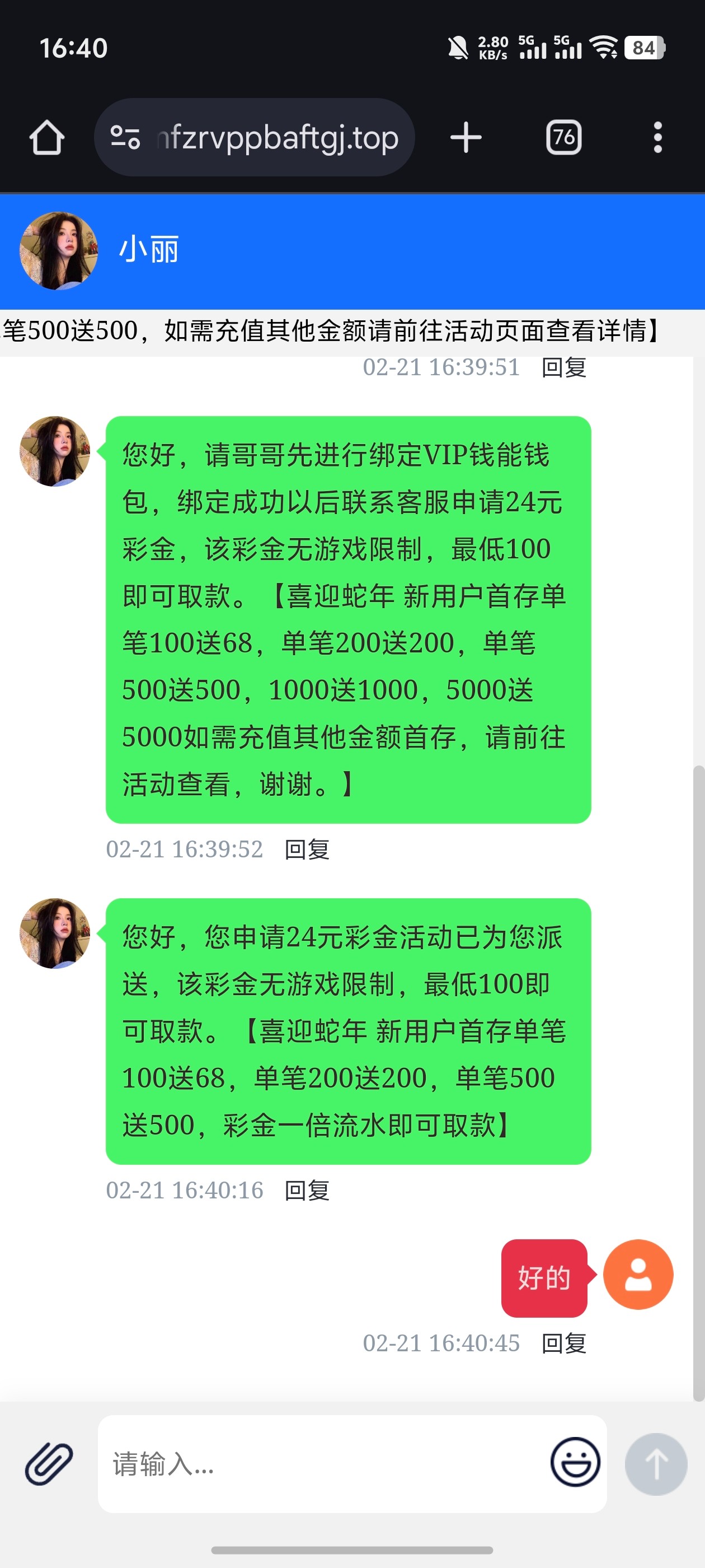 老用户绑定钱能钱包找在线客服送24彩金,也可以碰瓷电话特邀彩金,有就有没有无视吧