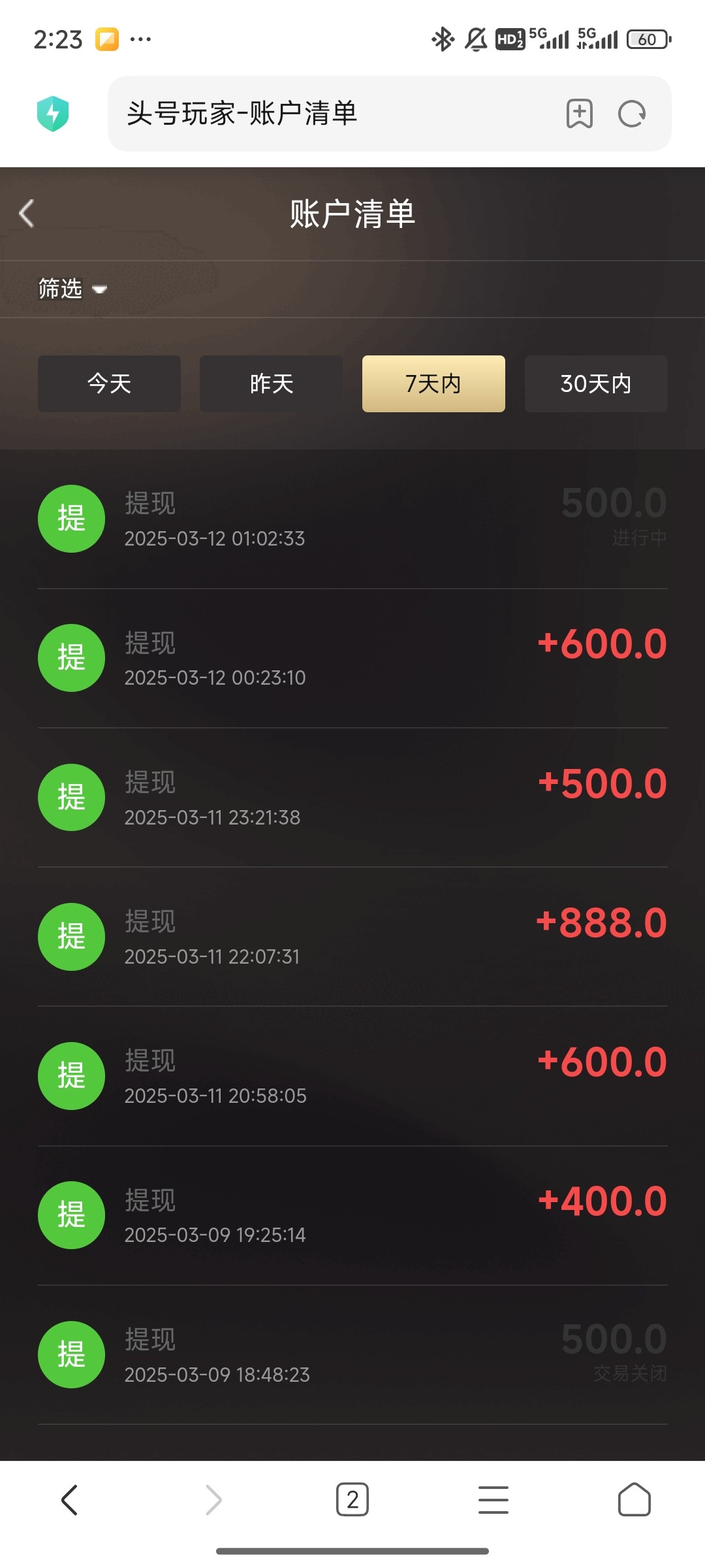 前面看帖子说有88券,就充了100去打够流水下了300,昨天客服说电子有活动100送58,下了600留了200在账号玩要体育,结果怎么玩怎么有,中途陆陆续续提了1500出来,刚提交的一笔500客服说审核,账号里还剩1k多,会不会给我黑了