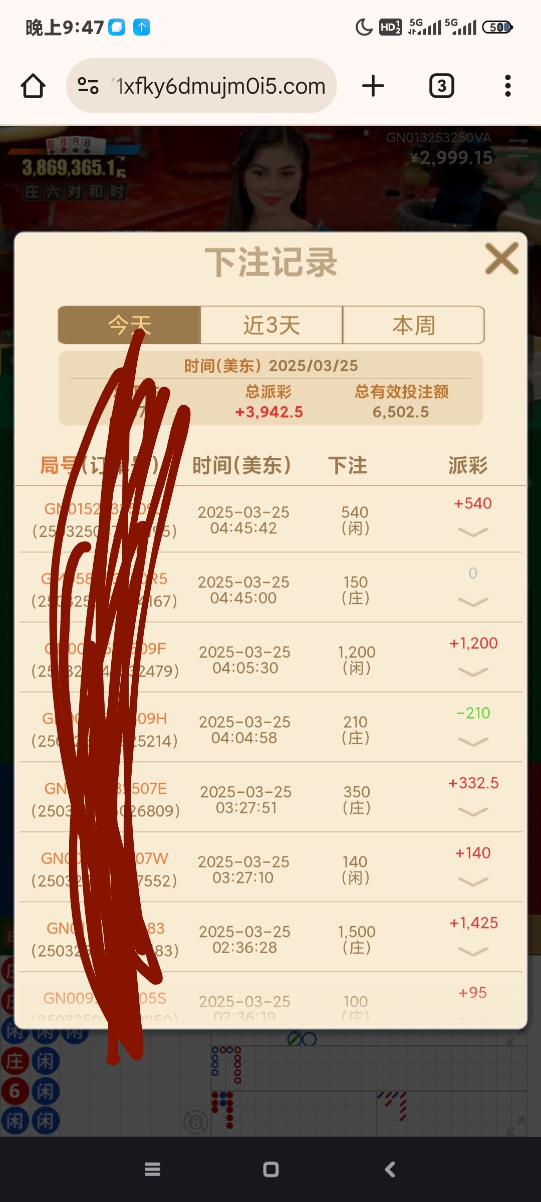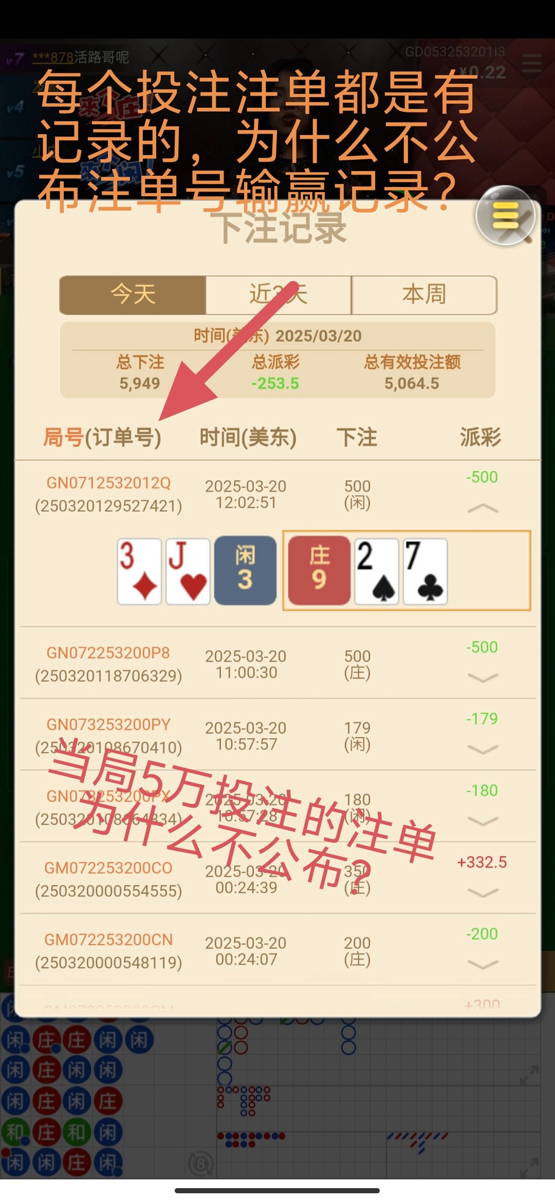 3. 注单号,5万的注单号,输了为什么不敢公布作比较?这样可以验证视频是否与注单号一样。