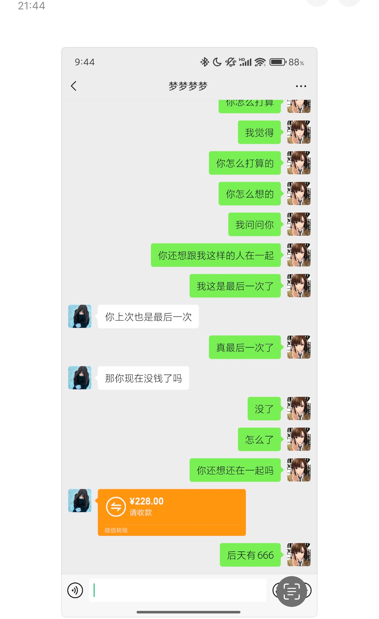 明明说好不赌了 今天又输了500 对不起我女朋友还有家人 谈了一年了 只跟着我吃苦 能不赌就不赌 我以后再也不要做这个畜生了 她还是个学生 2月3号那天倒下一分钱没有了 没钱吃饭了 把生活费都给我转过来了 今天我还跟她吵了一架 我真不是个人 我真是个废物