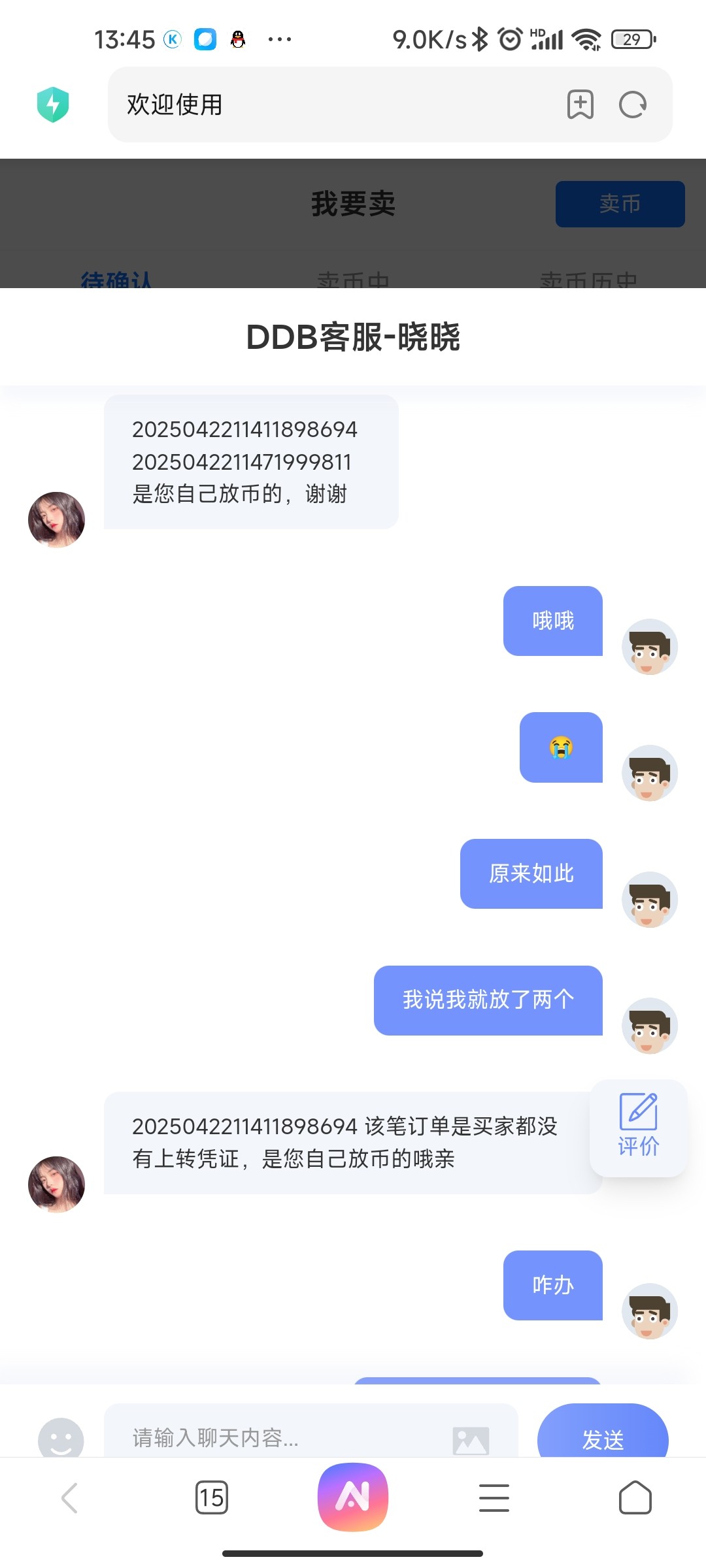 卖3个1000币子一个超时自动过去导致我不相信把没付款的点了确定