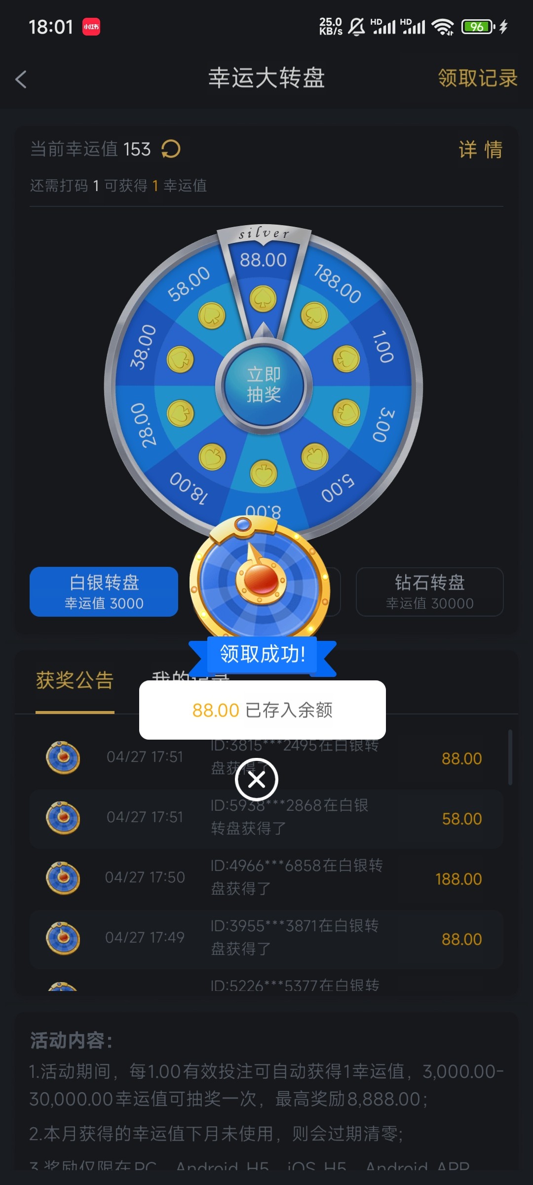 嗯?转盘第一次抽到88