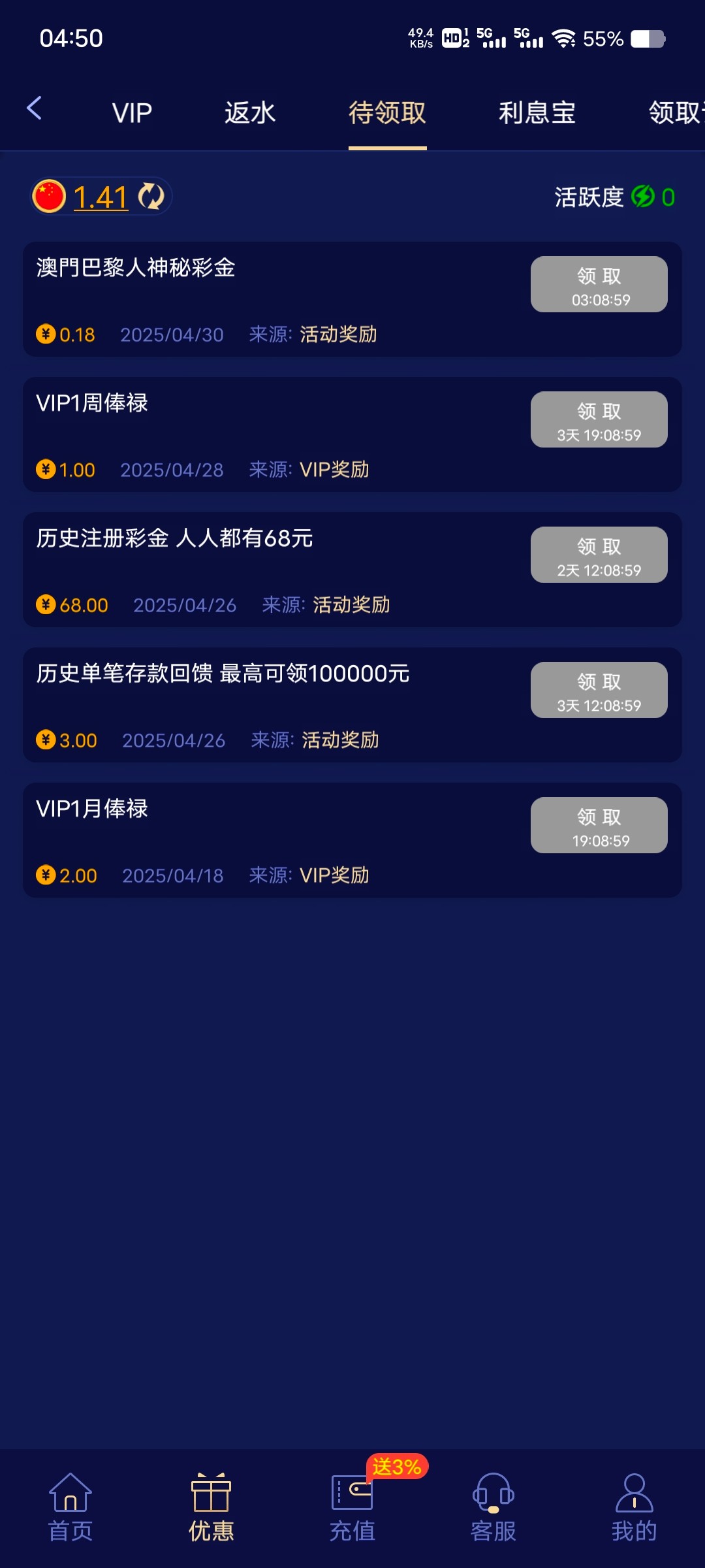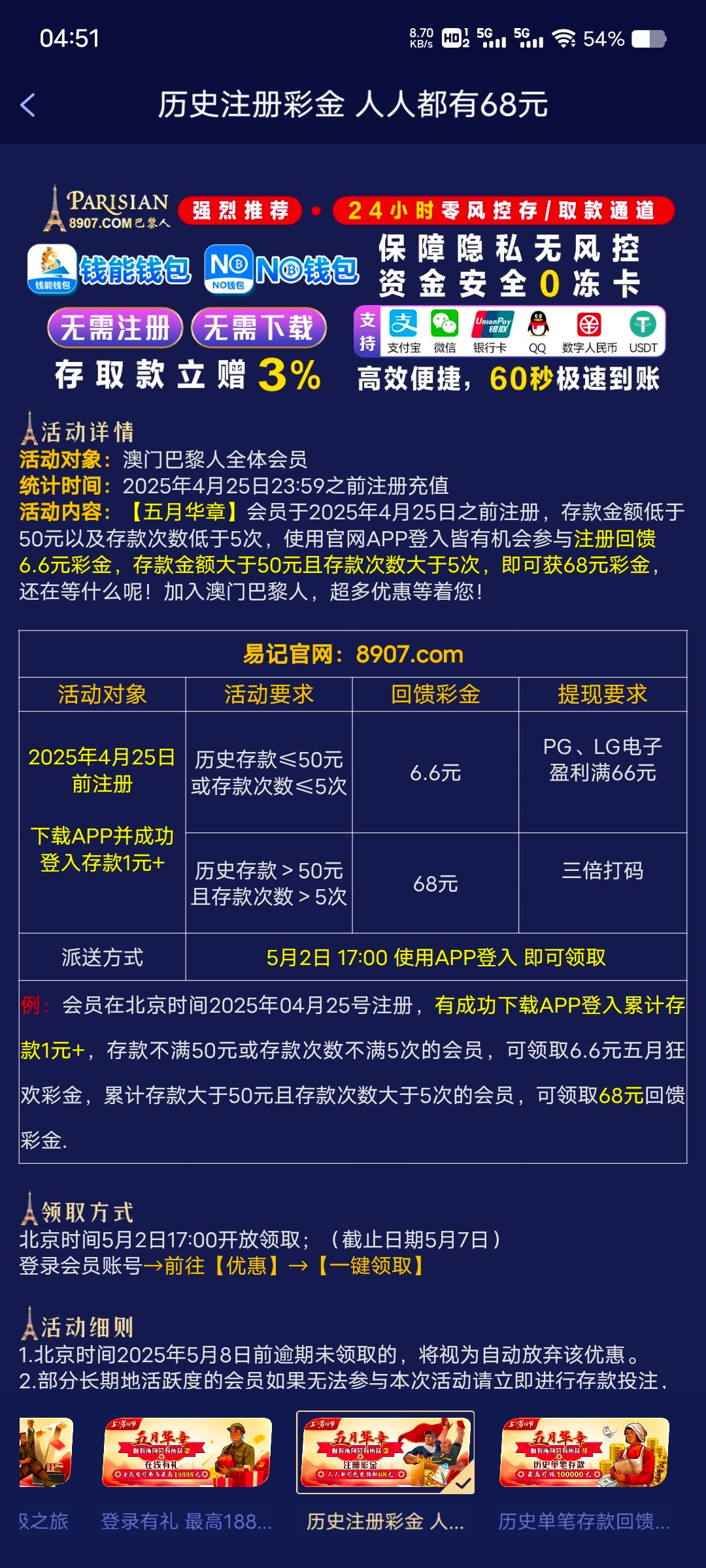 8907巴黎人 历史充值过的去看看有没有彩金