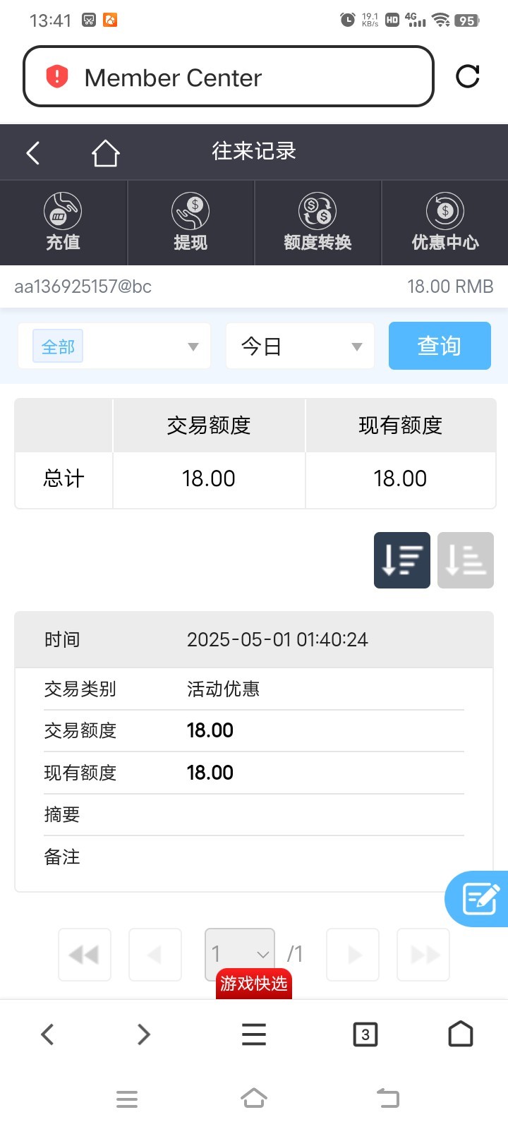 18提了240 充一块送38申请半天没结果
