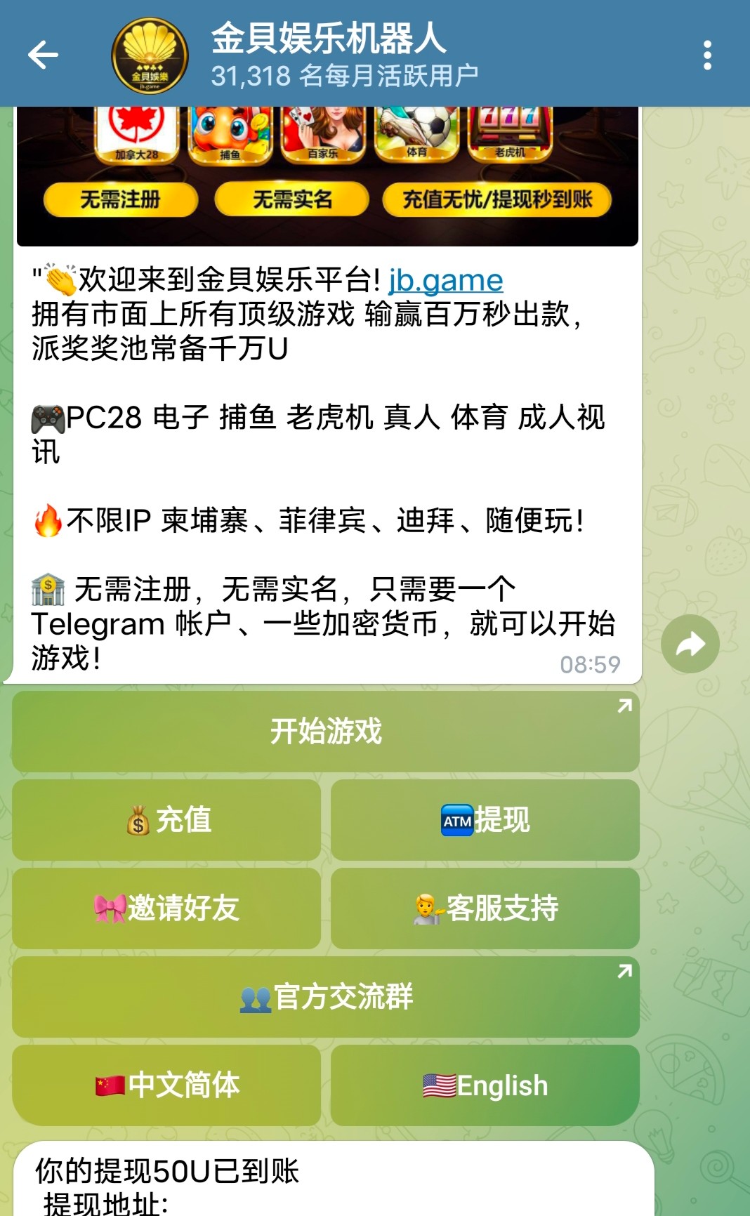 金币发了一百万人民币彩金,一万五千包,进度很慢,可能会持续几个小时才能抢完,人均一百,不要一个设备一个ip多号抢,出款查ip设备的,飞机频道 @jbgq ,还有一万三千包,老哥们快去吧
