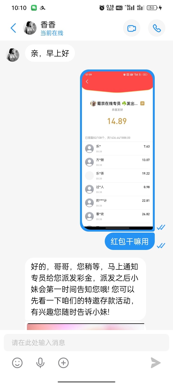 一周三四次红包,还行
