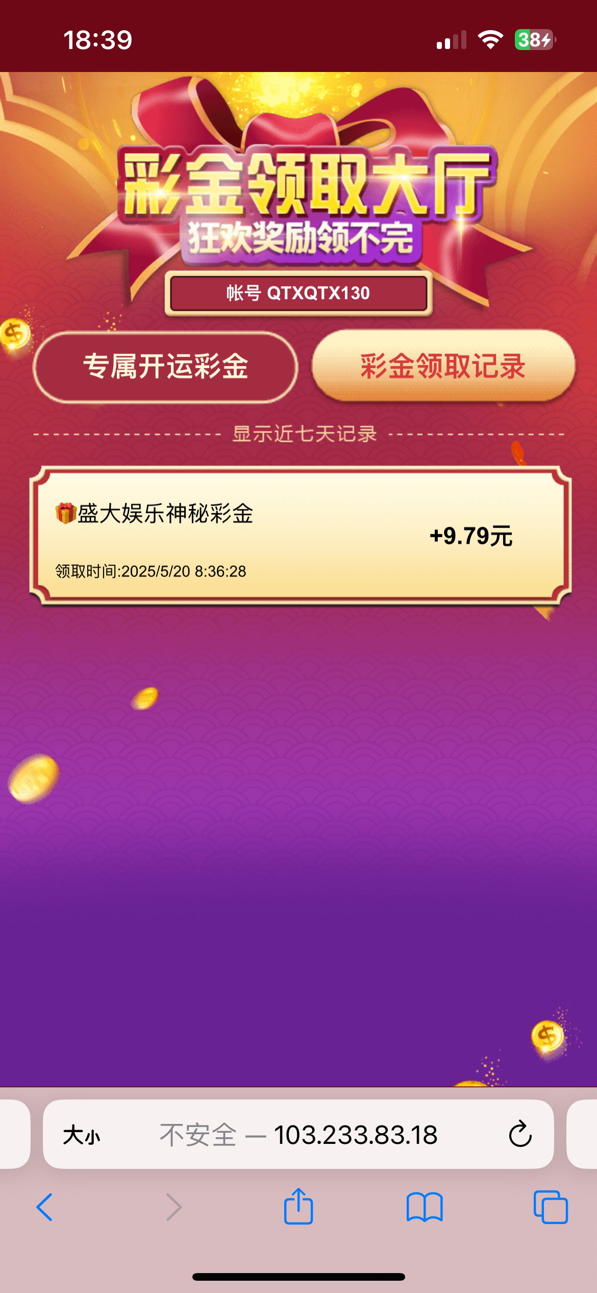 今天上号看一下发现有个神秘彩金,sdyl.com