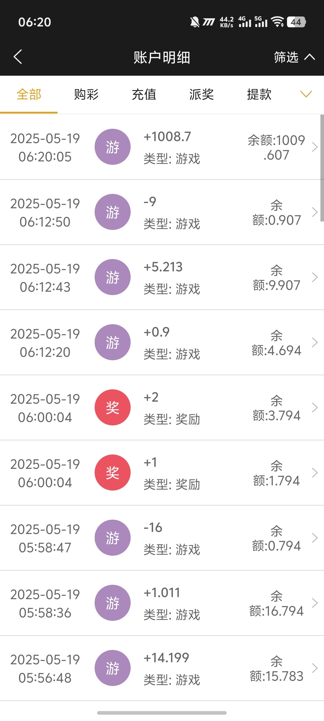 之前上了一千输完了,九块钱返水几分钟又打回来了