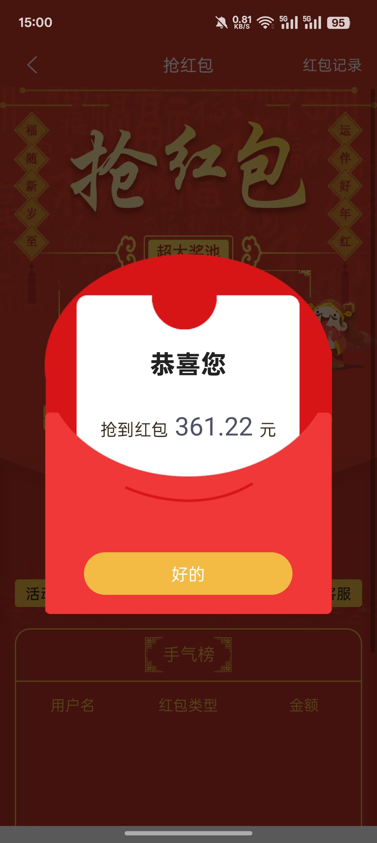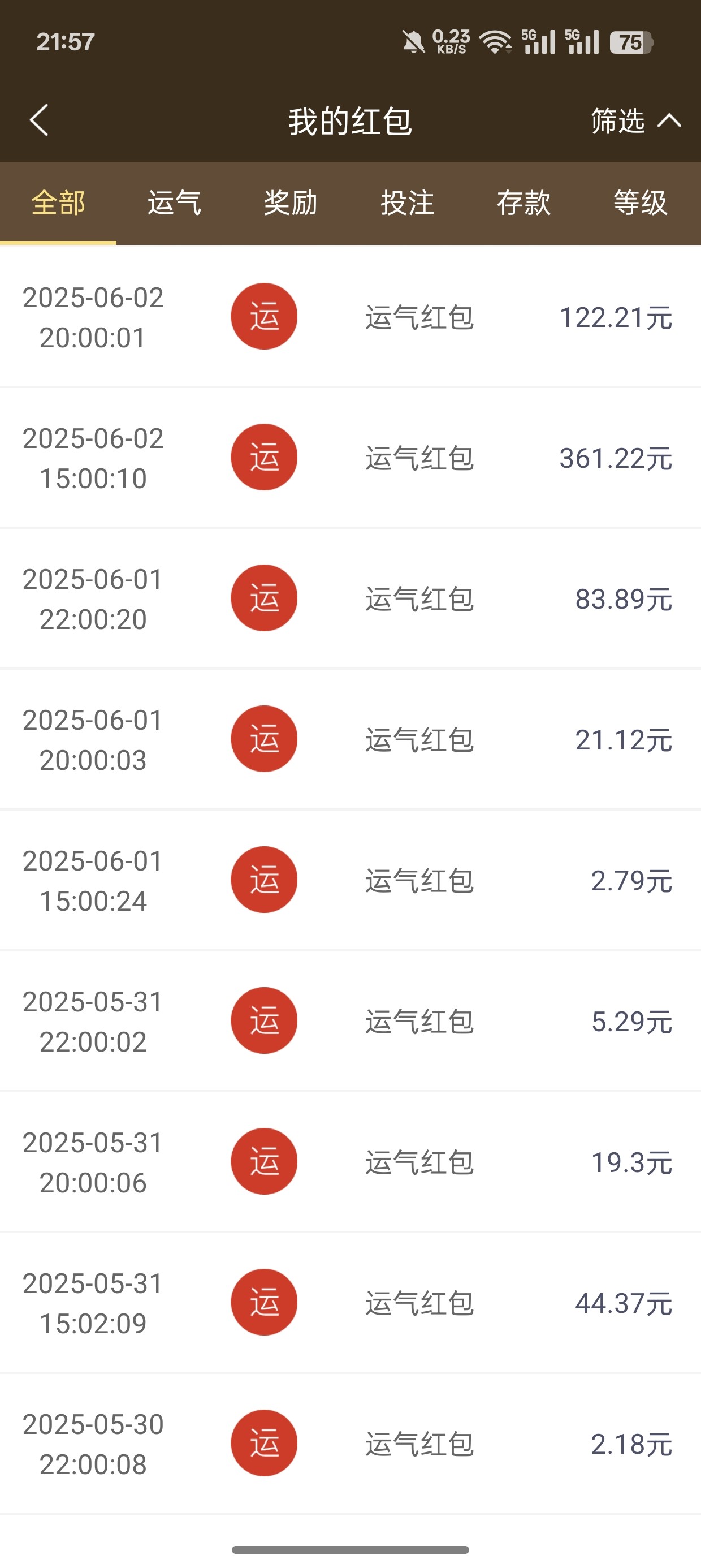 之前冲过9千多!抢个50多红包!想不到敢想有几百块钱