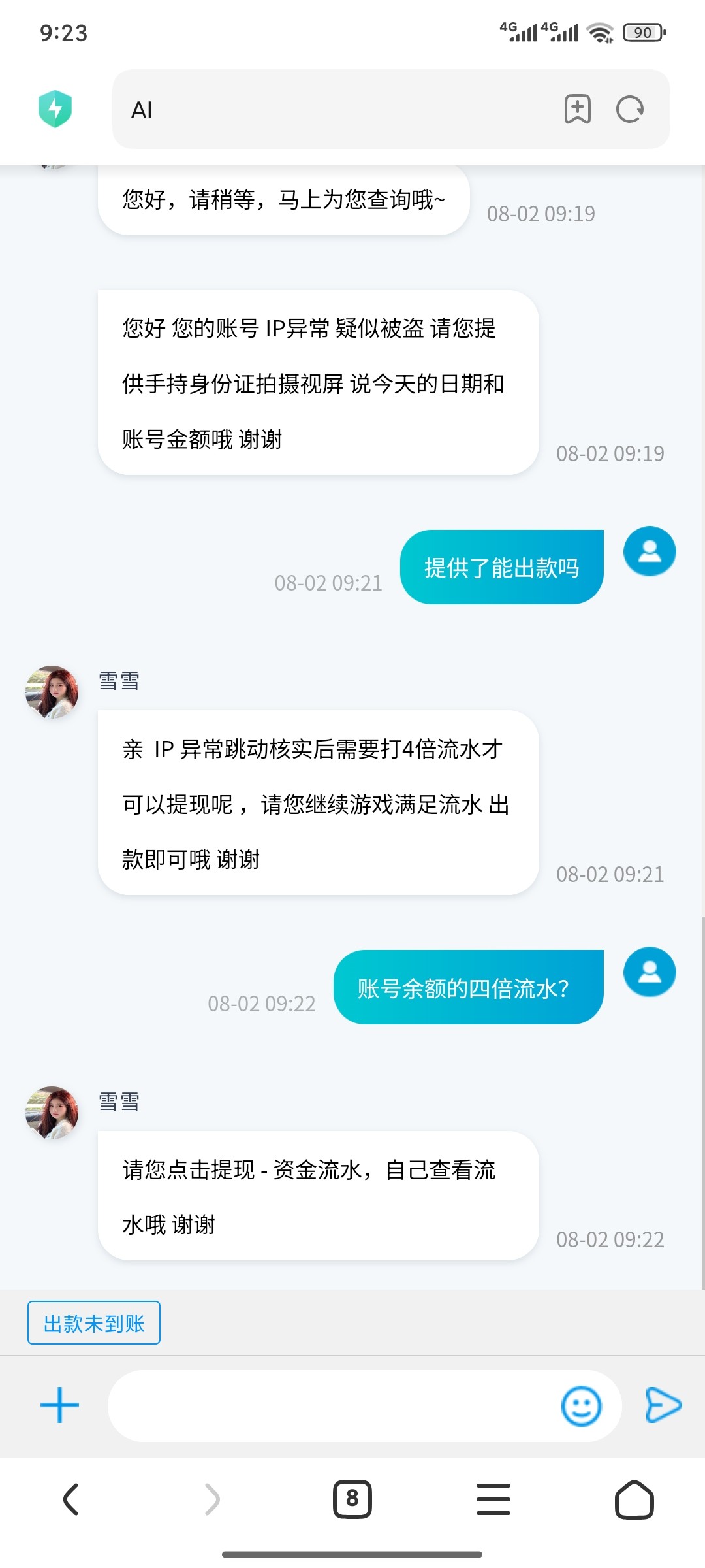 zx129040 所以兄弟你给了吗?你出了吗?我靠,我另外一个6 k流水什么都正常提现,妈的你直接给我ip1操,我操