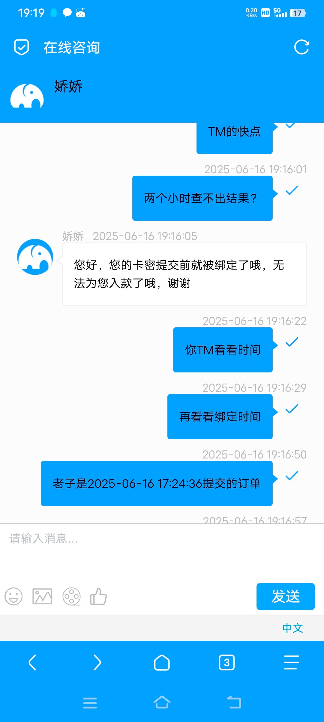 提交时间是在使用使用之前前后不过五十秒,客服真会睁眼说瞎话,把人当傻子。精彩系已经吃过我两次卡密咯,太恶心了