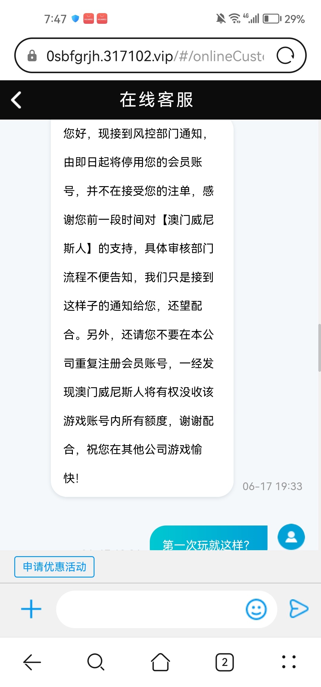 我刚也被这个黑,以小博大昨天出了,今天有那个提现加赠又打出几百,提现三分钟不到封号