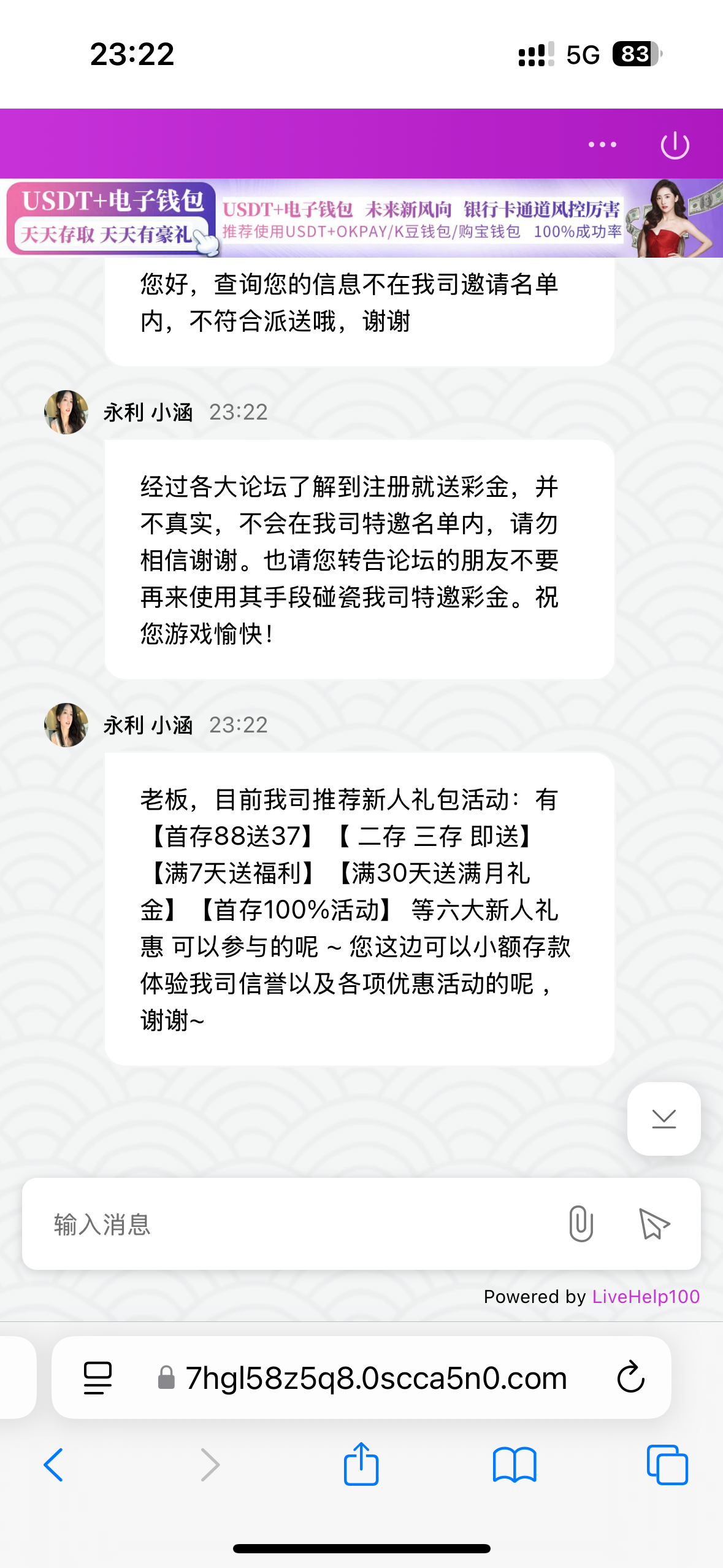 经过各大论坛了解到注册就送彩金,并不真实,不会在我司特邀名单内,请勿相信谢谢。也请您转告论坛的朋友不要再来使用其手段碰瓷我司特邀彩金。祝您游戏愉快!