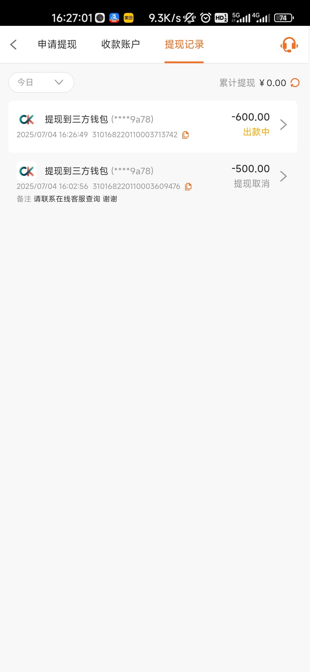 7668特邀已经到账了