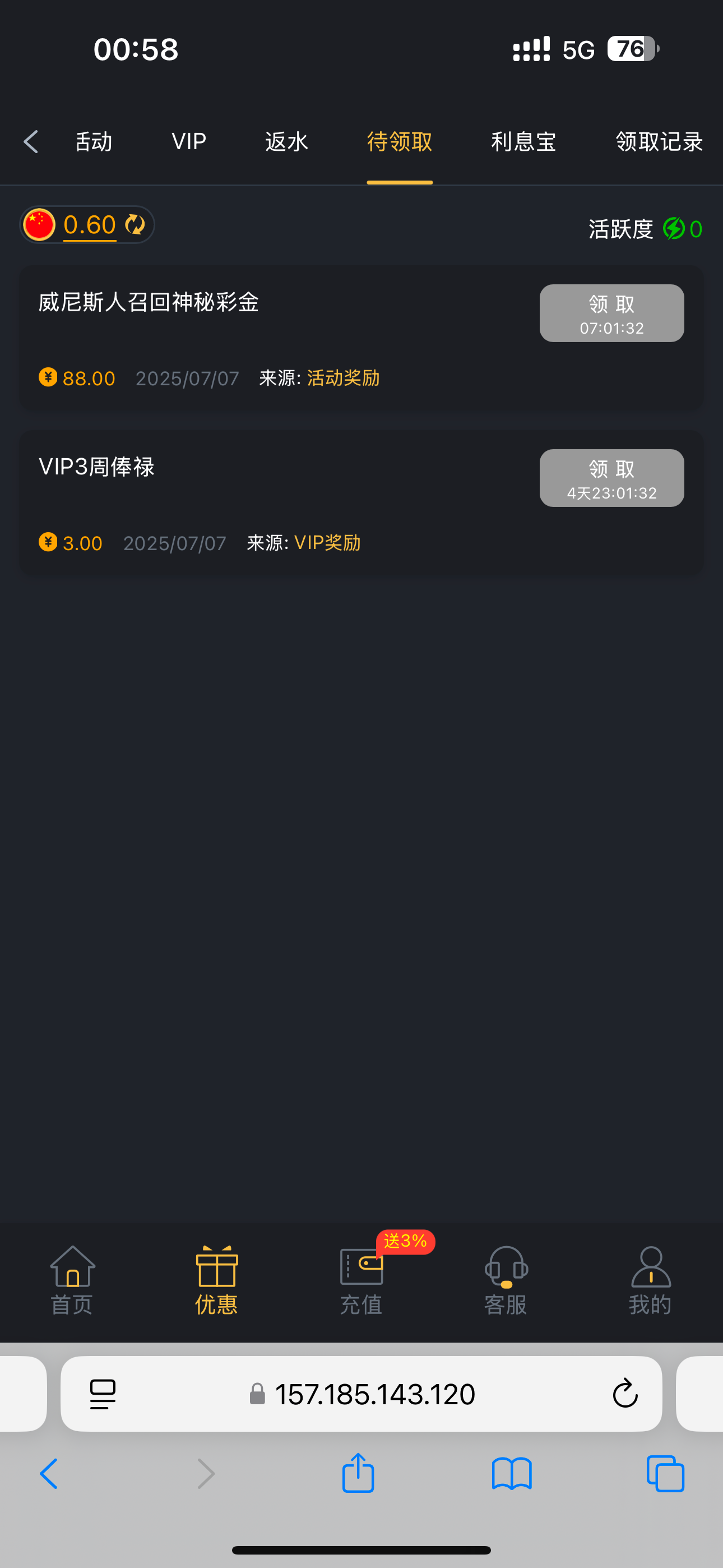 冲过50送了3块 最高上到20多