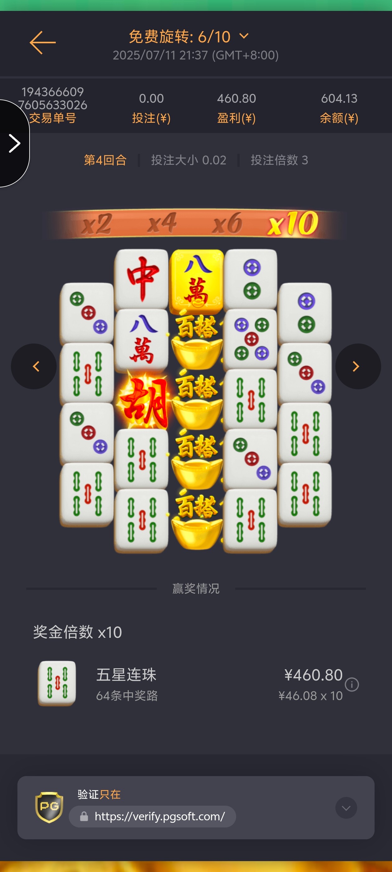 我也玩了几年了pg最多给过一次500倍