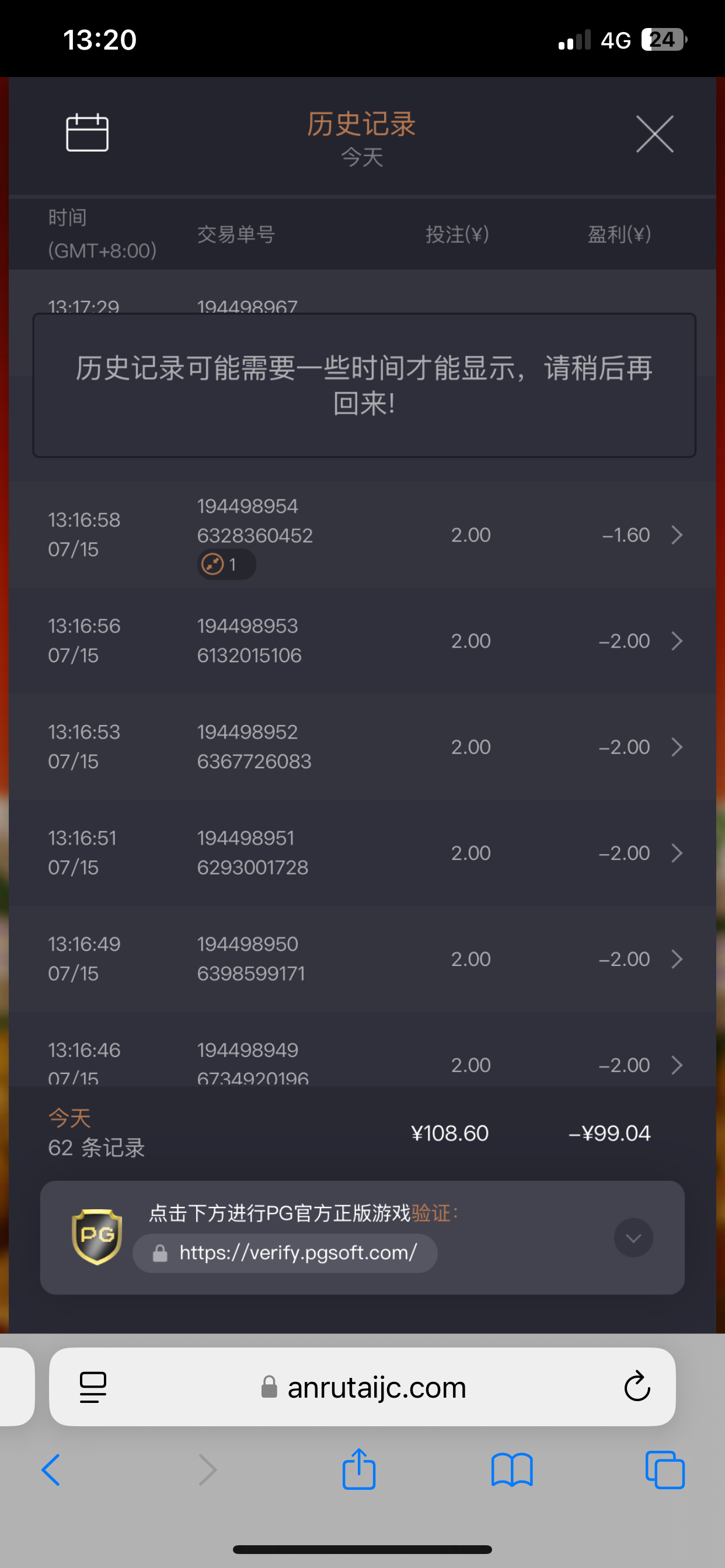 yls666666 你就上一个不到三百还是分平台输不是很正常吗有水你这个玩法也不好赢