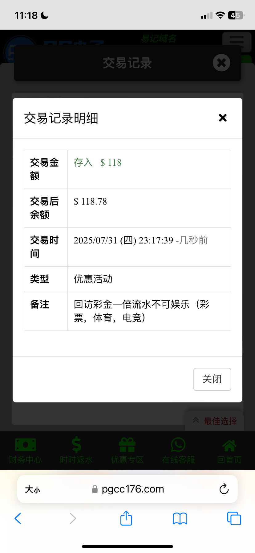 pg1回访领取118彩金
