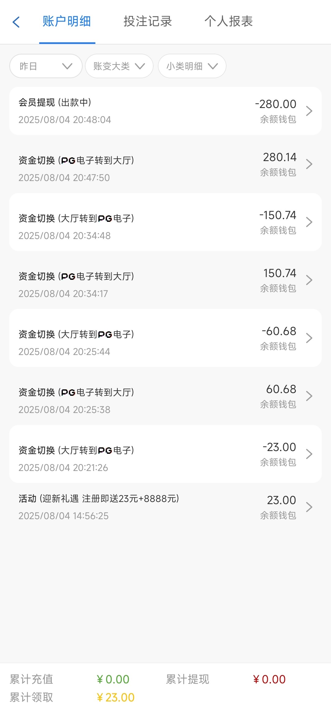 冲了10没打出来,后面发了短信送23提了338