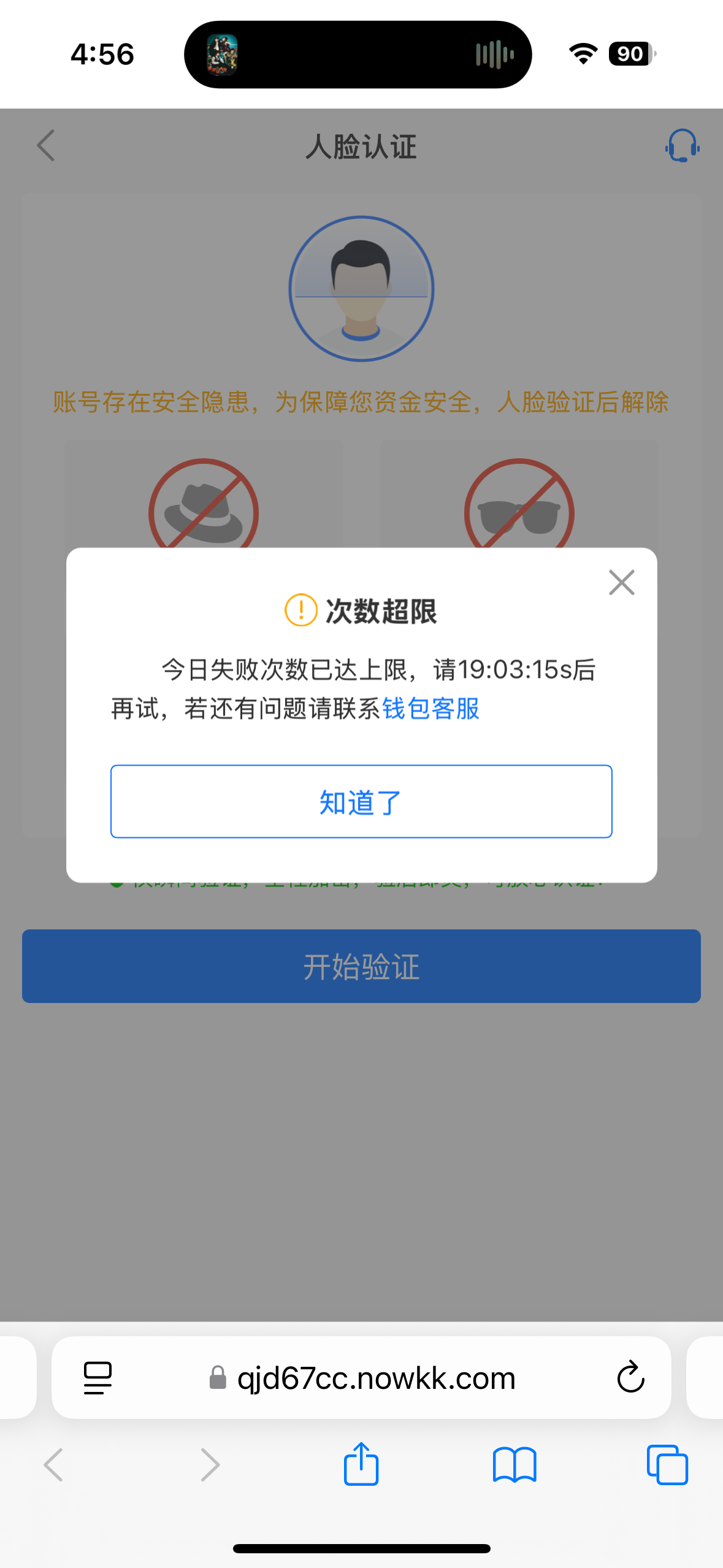 你这应该是手机摄像头或者验证的时候光线不好 没弄到位 次数用完了 等明天在验证
