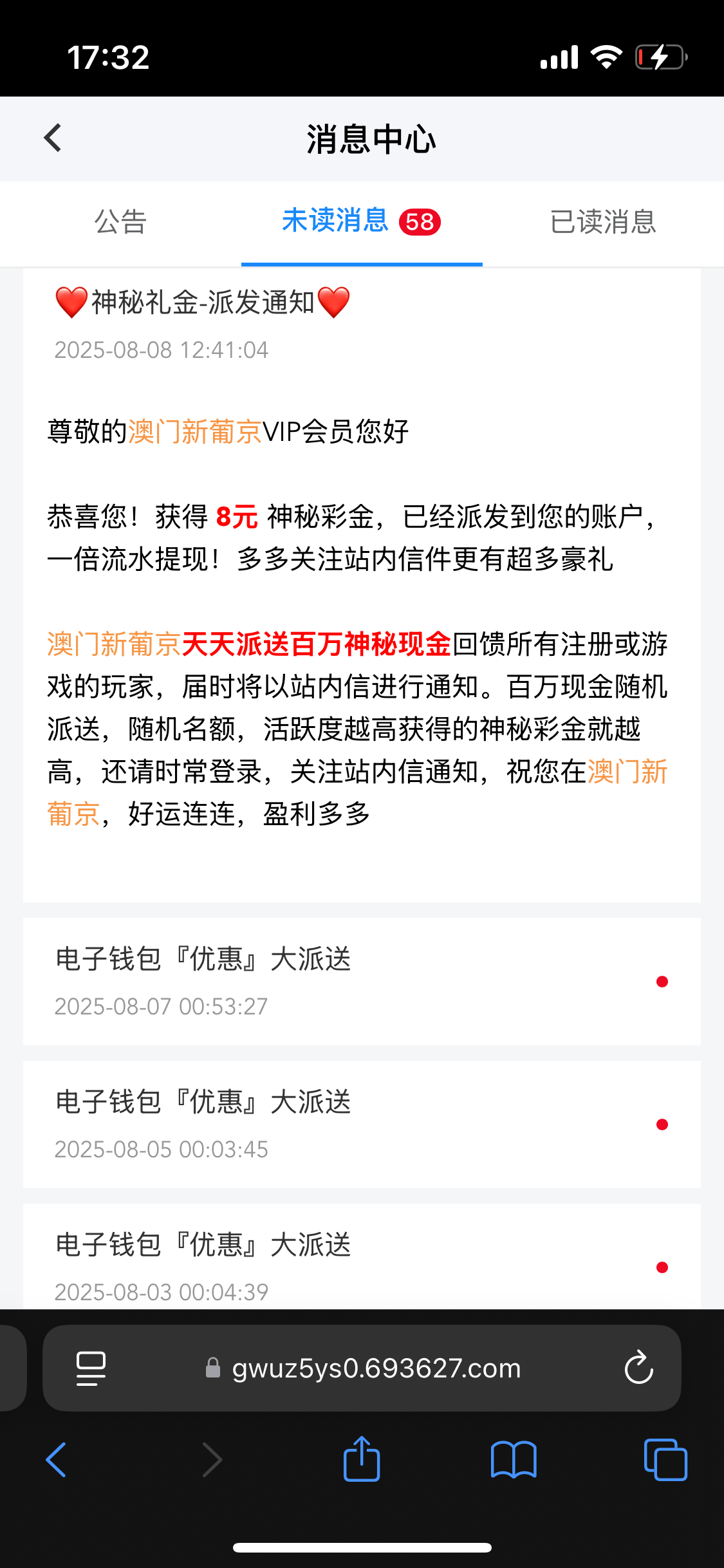 693gw.com我偶尔充值的给我派发了,大家都可以看一下有没有 没有神秘彩金也可以领取签到彩金