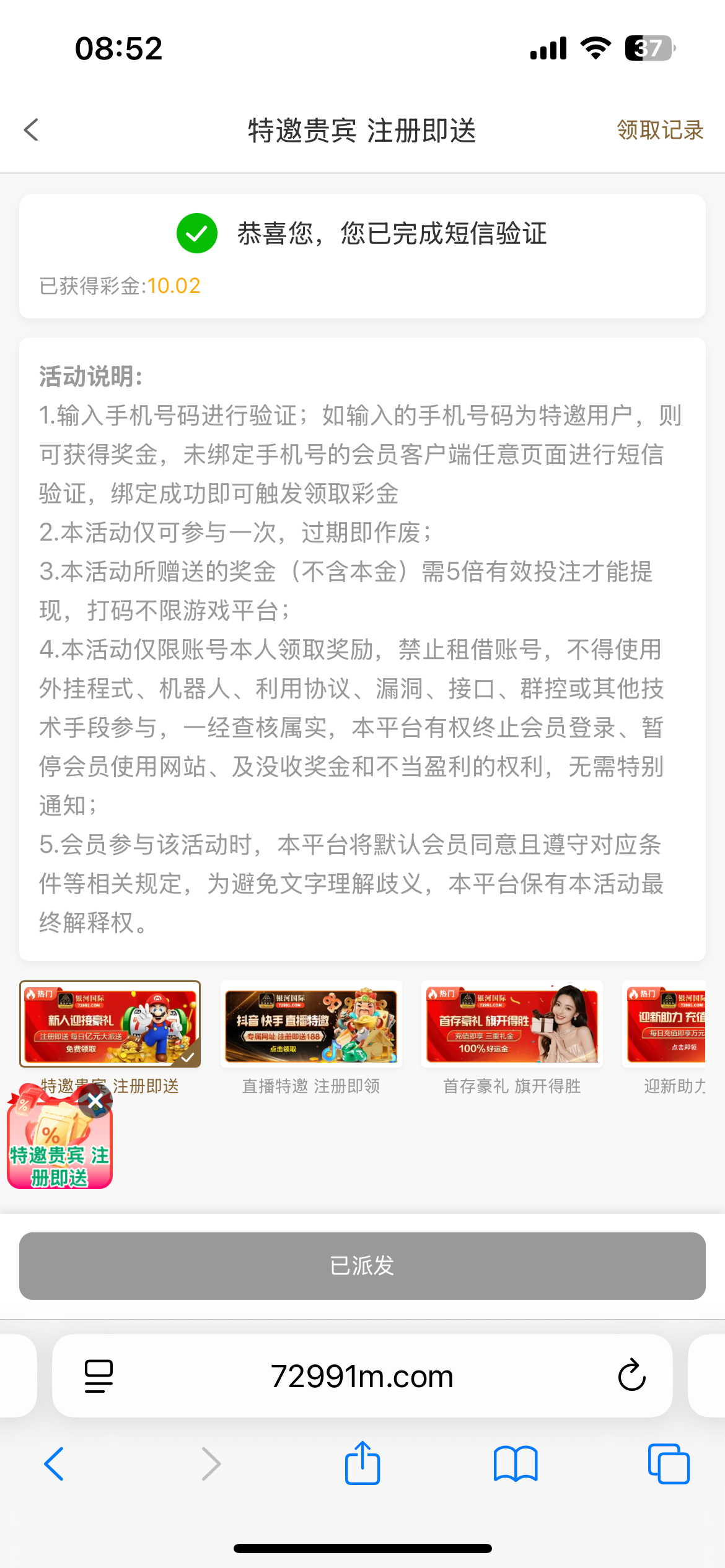 银河国际碰特邀彩金