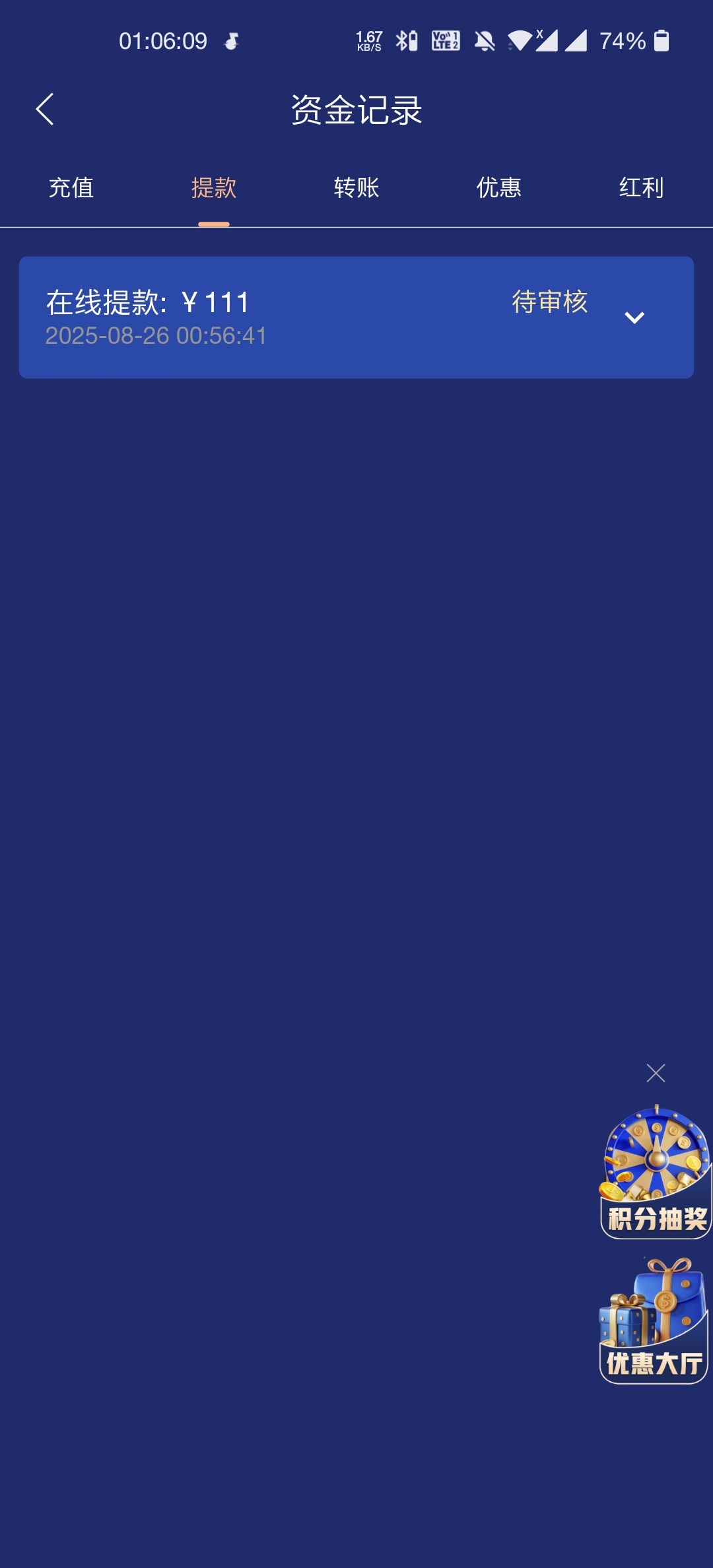 进去点两下就炸了,到104不知道能不能提现到账,就一个账户
