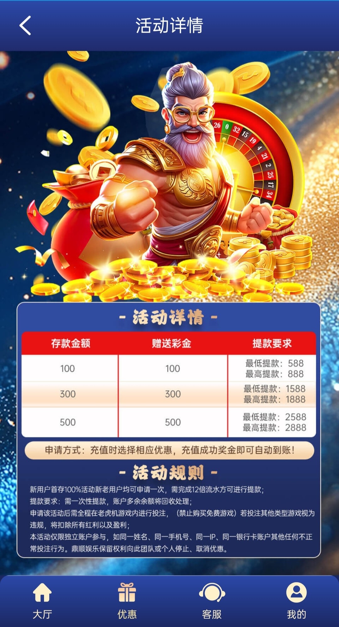 100+100彩金(最低提588最高888)