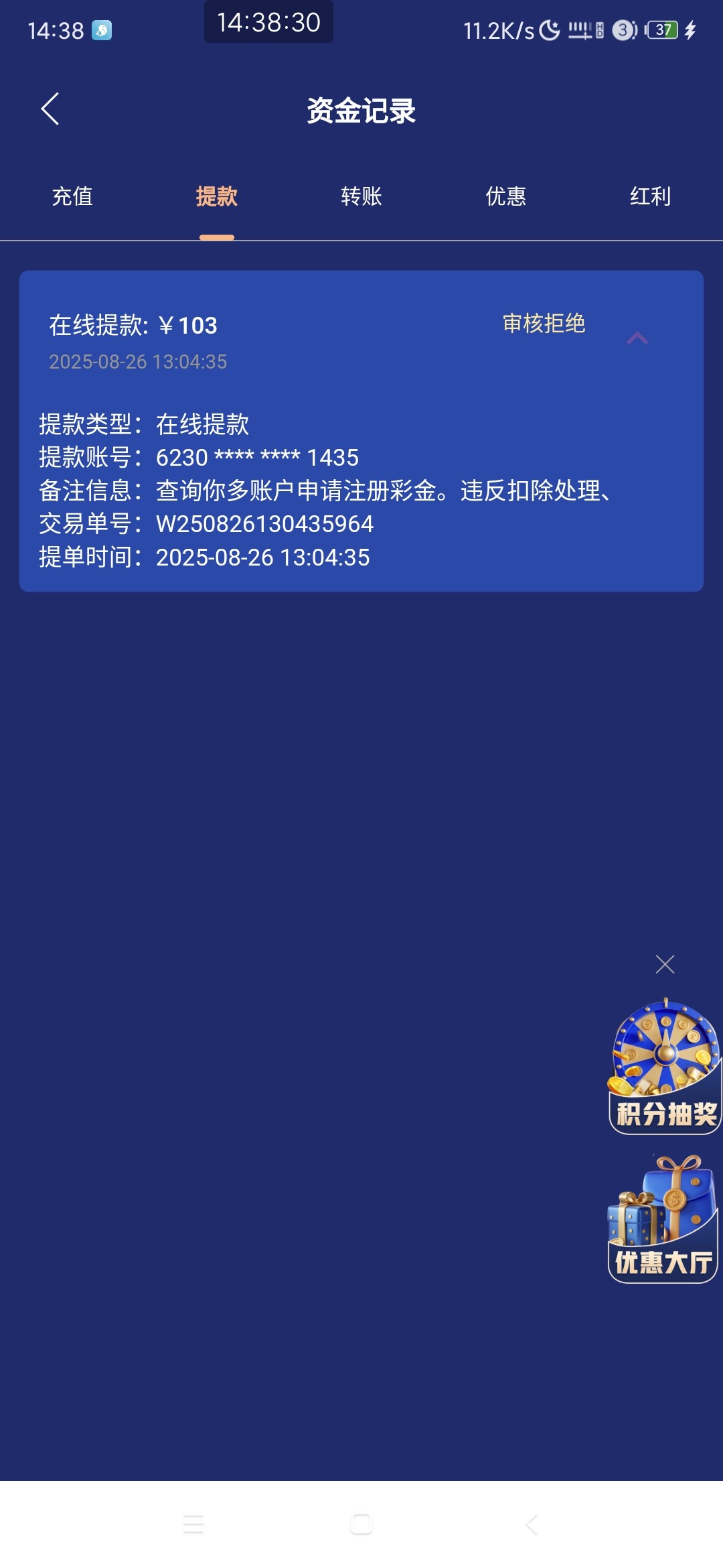 提款103不给到账