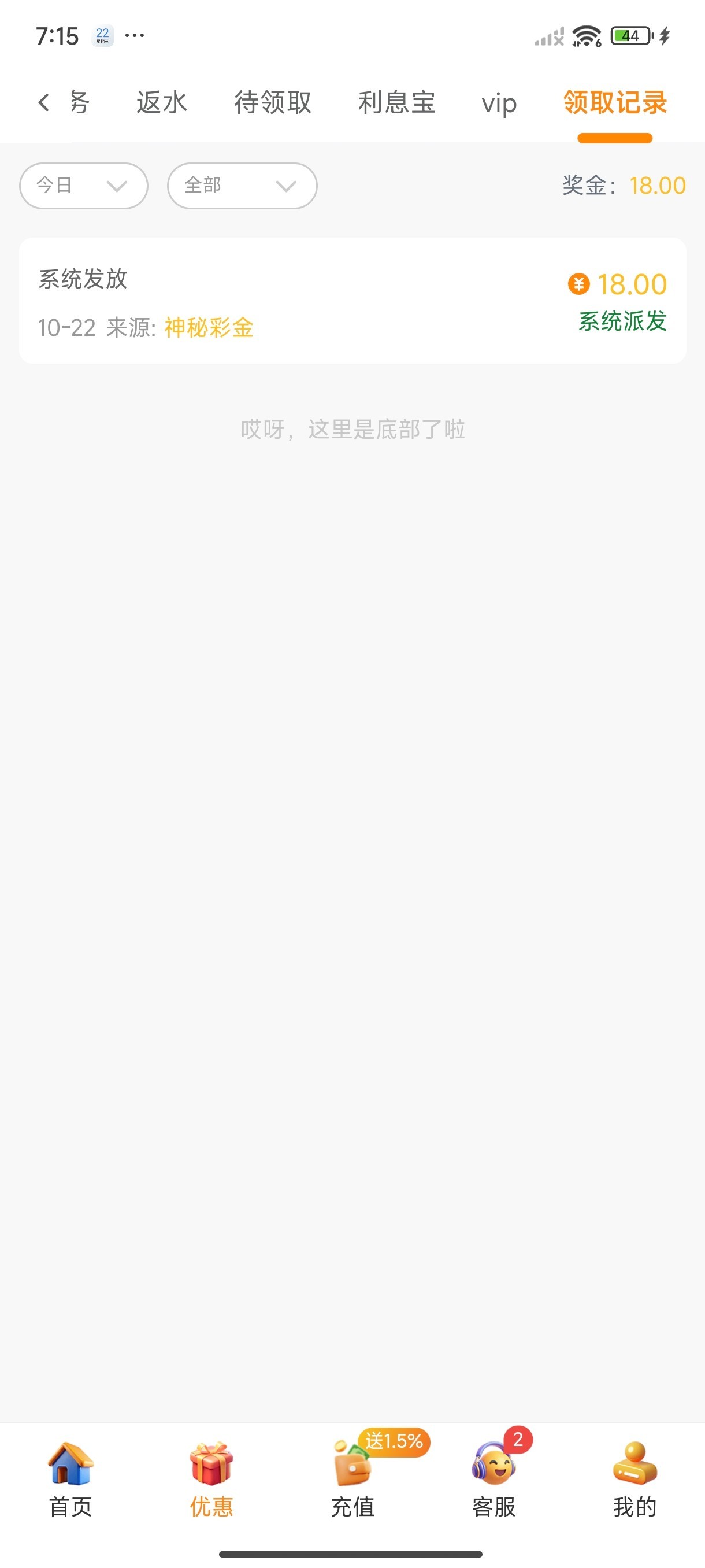 送了18,待领取里