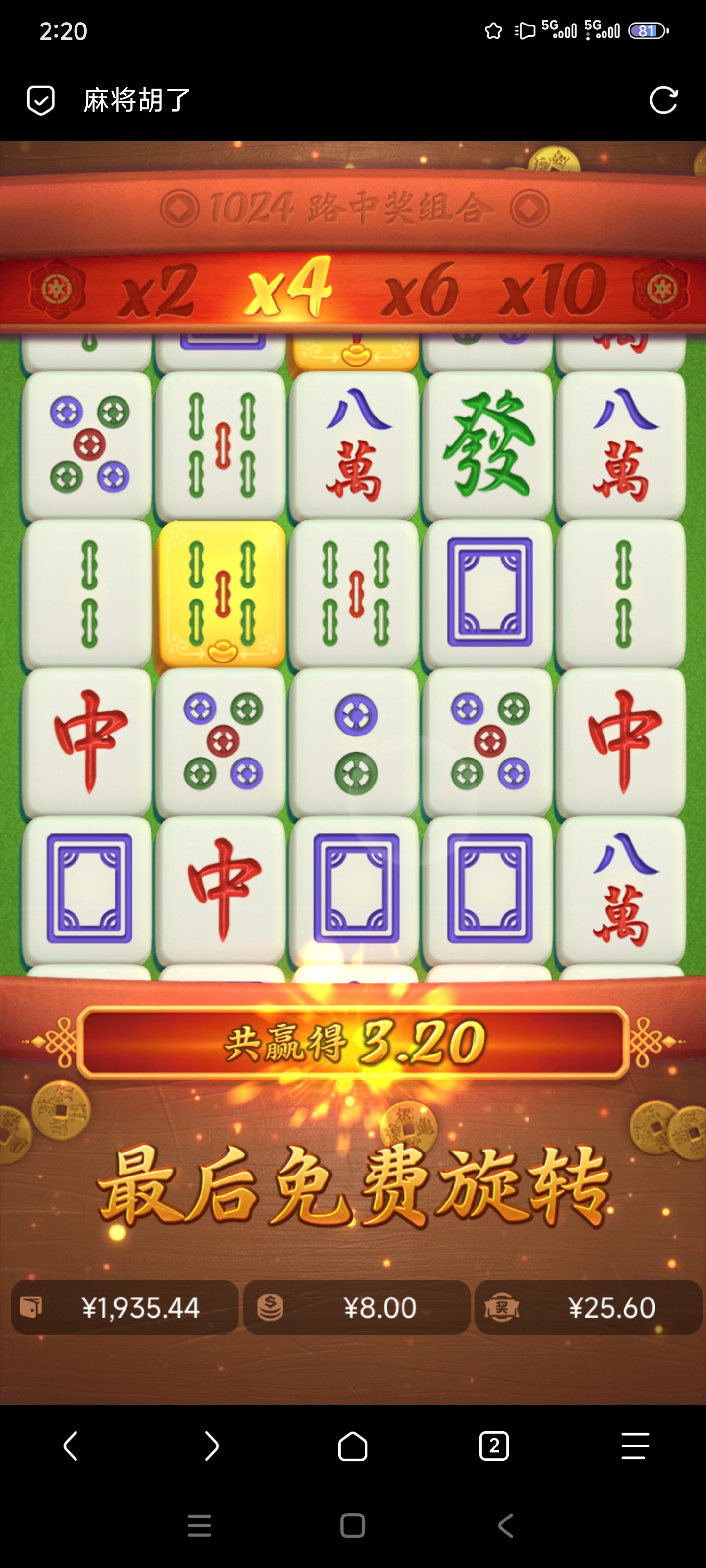 今天麻2一直2个糊 搞7-8次开了 1.6/120不给加转 后面2快7-8不开吃没了 别家7-8次开了爆6-7张