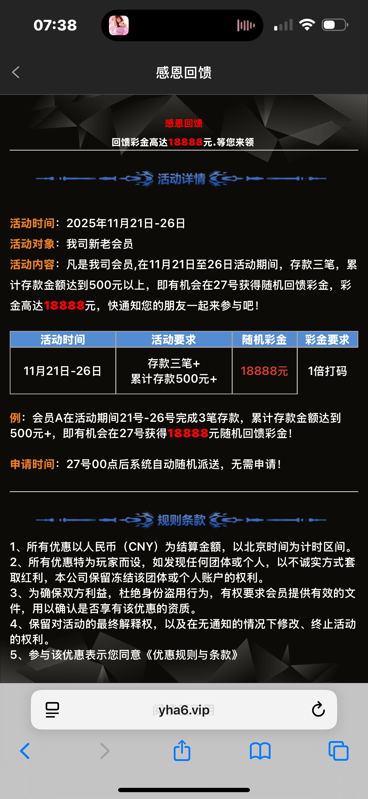 看图 要21-26号累计充值500 有米的自己去刷一下充值量 这个台子一般这个活动出来都送的蛮多的3016.com