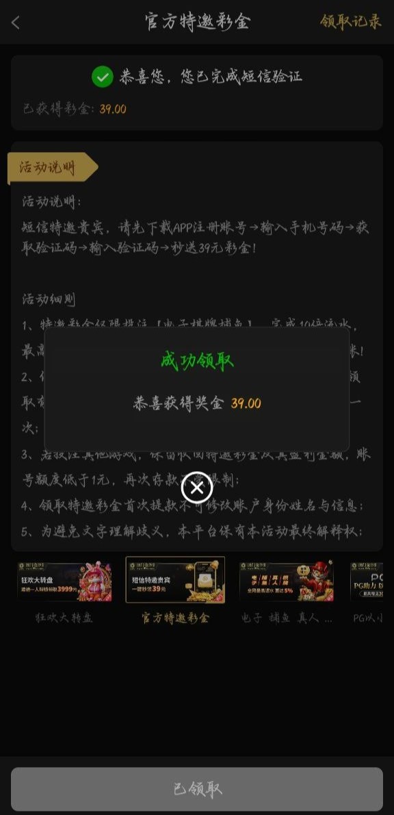 新用户注册自助领取特邀39彩金,具体自测吧